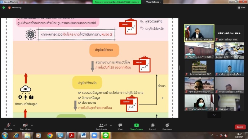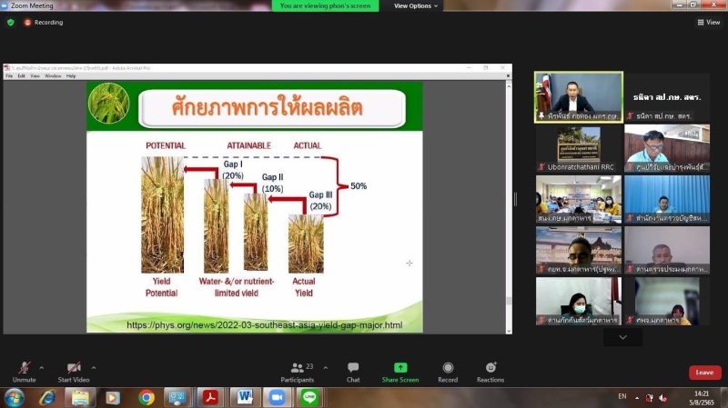 นายพีรพันธ์ คอทอง ผู้ตรวจราชการกระทรวงเกษตรและสหกรณ์ เป็นประธานการประชุมตรวจติดตามการปฏิบัติราชการของส่วนราชการในสังกัดกระทรวงเกษตรและสหกรณ์ ตามแผนการตรวจราชการ และการขับเคลื่อนแบบบูรณาการในระดับพื้นที่ ประจำปีงบประมาณ พ.ศ. 2565 รอบที่ 2 จังหวัดมุกดาหาร พร้อมด้วย เกษตรและสหกรณ์จังหวัด ผู้ช่วยผู้ตรวจราชการ หัวหน้าส่วนราชการ ผู้แทนหน่วยงาน และเจ้าหน้าที่ผู้ปฏิบัติงานที่เกี่ยวข้อง เข้าร่วมประชุมผ่านระบบการประชุมทางไกลแบบออนไลน์ (Application Zoom)