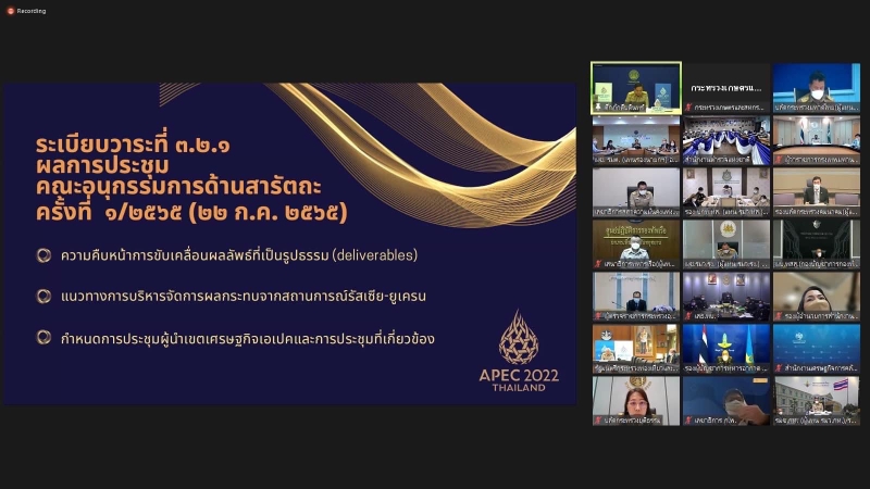 นายสมชวน รัตนมังคลานนท์ รองปลัดกระทรวงเกษตรและสหกรณ์ เปิดเผยภายหลังได้รับมอบหมายจากรัฐมนตรีว่าการกระทรวงเกษตรและสหกรณ์เป็นผู้แทนเข้าร่วมการประชุมคณะกรรมการระดับชาติเพื่อเตรียมการจัดการประชุมผู้นำเศรษฐกิจเอเปค และการประชุมที่เกี่ยวข้องในช่วงที่ประเทศไทยเป็นเจ้าภาพจัดการประชุมเอเปค ปี พ.ศ.2565 ครั้งที่ 2/2565 โดยมีพลเอก ประยุทธ์ จันทร์โอชา นายกรัฐมนตรี เป็นประธานในการประชุม ณ ตึกภักดีบดินทร์ ทำเนียบรัฐบาล และผ่านการประชุมทางไกลออนไลน์ โดยมี ดร.วนิดา กำเนิดเพ็ชร์ ผู้อำนวยการสำนักการเกษตรต่างประเทศ และเจ้าหน้าที่สำนักการเกษตรต่างประเทศ เข้าร่วมการประชุม โดยในที่ประชุมได้รายงานความก้าวหน้าในการเตรียมการเป็นเจ้าภาพจัดการประชุมระดับผู้นำเอเปค ครั้งที่ 29 ซึ่งมีกำหนดจัดขึ้นในระหว่างวันที่ 16-19 พฤศจิกายน 2565 ณ ศูนย์ประชุมแห่งชาติสิริกิติ์
