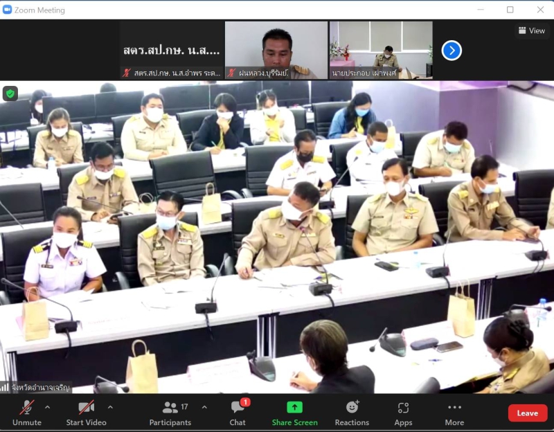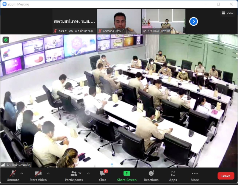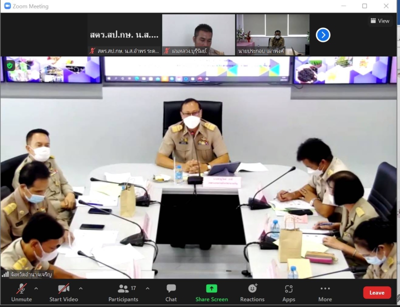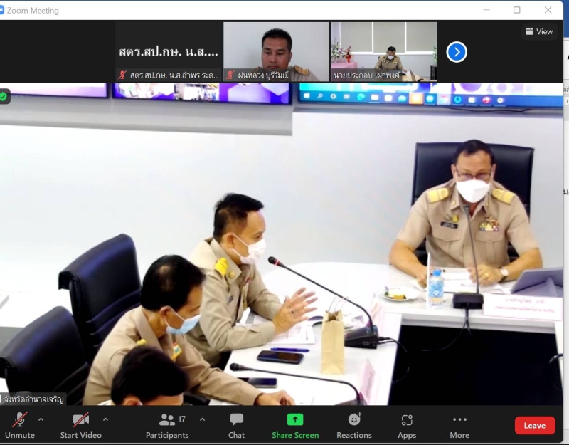 วันจันทร์ที่ 8 สิงหาคม พ.ศ. 2565 เวลา 09.30 น. ผู้ตรวจราชการกระทรวงเกษตรและสหกรณ์ (นายประกอบ เผ่าพงศ์) ประชุมตรวจติดตามความก้าวหน้าผลการดำเนินงานตามแผนการตรวจราชการและการขับเคลื่อนแบบบูรณาการในพื้นที่ ของผู้ตรวจราชการกระทรวงเกษตรและสหกรณ์ รอบที่ 2 จังหวัดอำนาจเจริญ พร้อมด้วยหัวหน้าส่วนราชการในสังกัดกระทรวงเกษตรและสหกรณ์ในพื้นที่ รวมทั้งผู้ช่วยผู้ตรวจราชการกระทรวงเกษตรและสหกรณ์ (ระดับกรม) โดยการประชุมฯ ประกอบด้วย การรายงานความก้าวหน้าผลการดำเนินงานตามนโยบายสำคัญของกระทรวงเกษตรและสหกรณ์ และการรายงานข้อมูลสินค้าเกษตรที่สำคัญของจังหวัดอำนาจเจริญ 4 ชนิดสินค้า ได้แก่ ข้าวหอมมะลิ โคเนื้อ ลูกพันธุ์สัตว์น้ำจืด และมันสำปะหลัง