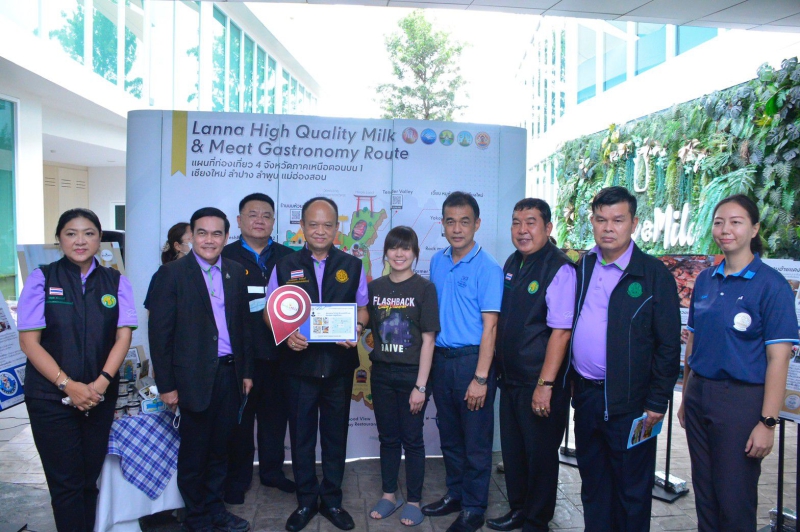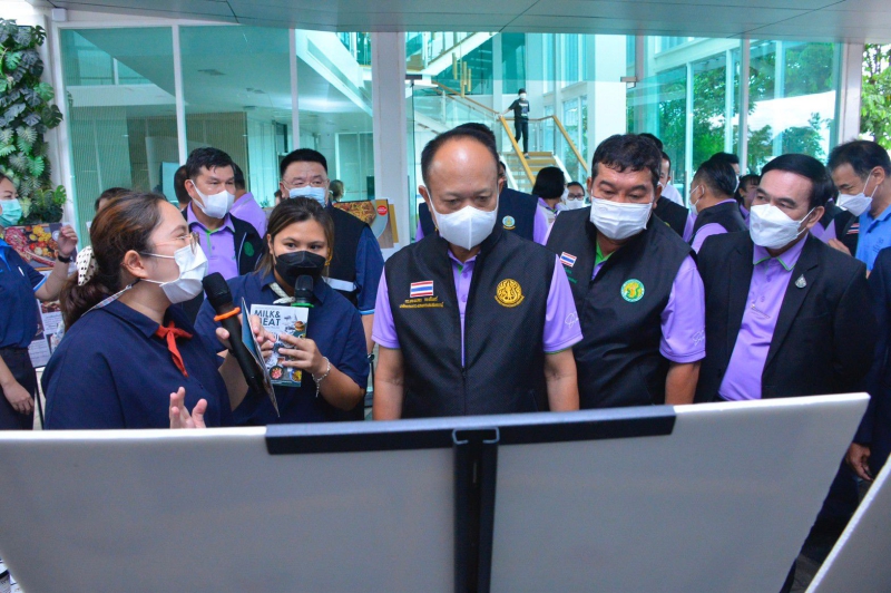 หลังจากนั้น ได้ลงพื้นที่ตรวจราชการดูงานการส่งเสริมการผลิตสินค้าเกษตร จุดที่ 1 การจัดการฟาร์มโคนม และการดำเนินธุรกิจแปรรูปผลิตภัณฑ์นม พร้อมทั้งชมนิทรรศการตัวอย่างร้าน ภายใต้โครงการ “Lanna High Quality Milk & Meat Gastronomy Route” ณ บริษัทเชียงใหม่เฟรชมิลค์ จำกัด อำเภอสารภี จังหวัดเชียงใหม่