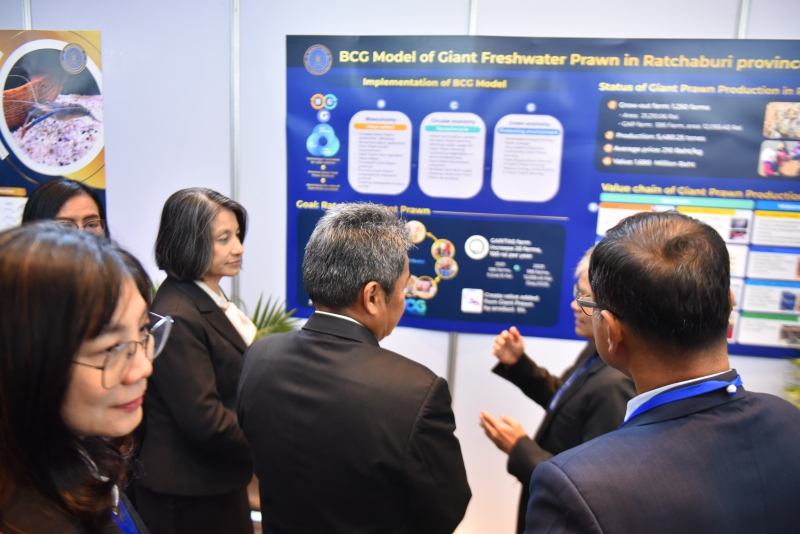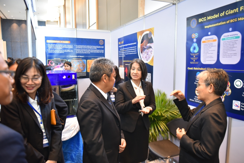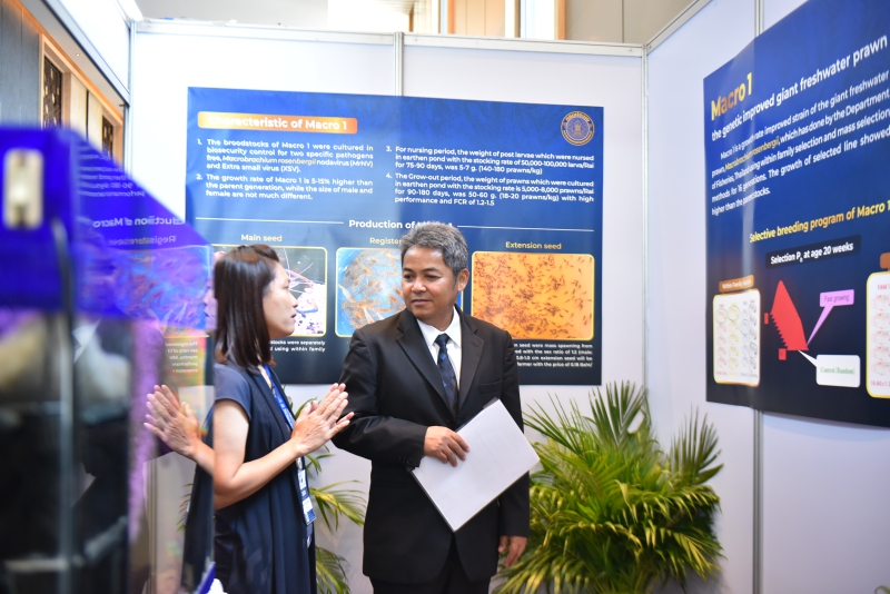 ทั้งนี้ ภายในงานยังมีการจัดนิทรรศการเพื่อถ่ายทอดองค์ความรู้งานวิจัยการพัฒนาเทคโนโลยีใหม่ๆ จากมหาวิทยาลัย ภาคเอกชนบริษัท โดยในส่วนของกรมประมงได้นำผลงานที่โดดเด่น ได้แก่ 1) การพัฒนาพันธุ์กุ้งก้ามกราม มาโคร 1,3 2) ข้อมูล Thailand fisheries supply chain 3) BCG Model กุ้งก้ามกรามจังหวัดราชบุรี และ 4) Fishermanshop ร่วมจัดแสดง