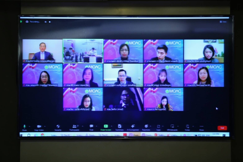 ร้อยเอก ธรรมนัส พรหมเผ่า รัฐมนตรีว่าการกระทรวงเกษตรและสหกรณ์ เป็นประธานการประชุมหารือการขับเคลื่อนเชิงรุกด้านต่างประเทศและมอบนโยบายด้านการเกษตรต่างประเทศให้แก่สำนักงานที่ปรึกษาการเกษตรต่างประเทศ (สปษ.) จำนวน 11 แห่ง ใน 8 ประเทศ โดยมี นายไชยา พรหมา รัฐมนตรีช่วยว่าการกระทรวงเกษตรและสหกรณ์ นายอนุชา นาคาศัย รัฐมนตรีช่วยว่าการกระทรวงเกษตรและสหกรณ์ นายประยูร อินสกุล ปลัดกระทรวงเกษตรและสหกรณ์ นายเศรษฐเกียรติ กระจ่างวงษ์ รองปลัดกระทรวงเกษตรและสหกรณ์ และเจ้าหน้าที่ที่เกี่ยวข้องเข้าร่วม ณ ห้องประชุมกระทรวงเกษตรและสหกรณ์ และผ่านระบบการประชุมทางไกลออนไลน์ (Zoom meeting) โดยการประชุมครั้งนี้ รมว.ธรรมนัส ได้มอบนโยบายขับเคลื่อนเชิงรุกด้านต่างประเทศ 5 นโยบาย ประกอบด้วย 1) เป็นผู้แทนกระทรวงเกษตรและสหกรณ์ในต่างประเทศ 2) เป็นหน่วยงาน Intelligence Unit 3) แสวงหาความร่วมมือด้านการเกษตร 4) แก้ปัญหาและอุปสรรคในการส่งออกสินค้าเกษตรของไทยในต่างประเทศ และ 5) การส่งเสริมและขยายการค้าสินค้าเกษตรในต่างประเทศ เพื่อการขับเคลื่อนการเกษตรต่างประเทศอย่างเป็นรูปธรรม มุ่งสร้างรายได้ภาคการเกษตร 3 เท่าในเวลา 4 ปี อีกทั้งได้มีการเพิ่มสำนักงานที่ปรึกษาการเกษตรต่างประเทศ (สปษ.) ในกลุ่มประเทศที่มีศักยภาพ ประกอบด้วย ราชอาณาจักรซาอุดีอาระเบีย สาธารณรัฐเกาหลี และสาธารณรัฐอินเดีย เพื่อรักษาตลาดและมุ่งเปิดตลาดสินค้าเกษตรในกลุ่มประเทศดังกล่าวเพิ่มเติม