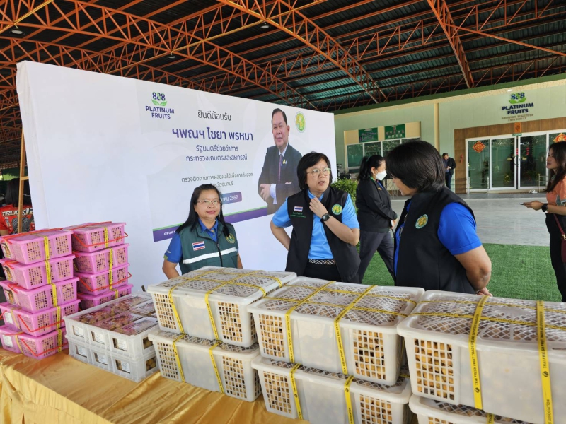 วันศุกร์ที่ 8 มีนาคม 2567 เวลา 10.00 น. นายไชยา พรหมา รัฐมนตรีช่วยว่าการกระทรวงเกษตรและสหกรณ์ โดยมีนางสาวภัทราภรณ์ โสเจยยะ รองปลัดกระทรวงเกษตรและสหกรณ์ และนางสาวอิงอร ปัญญากิจ ผู้ตรวจราชการกระทรวงเกษตรและสหกรณ์ พร้อมคณะ ลงพื้นที่ตรวจติดตามการผลิตผลไม้เพื่อการส่งออก จังหวัดจันทบุรี โดยนายมนต์สิทธิ์ ไพศาลธนวัฒน์ ผู้ว่าราชการจังหวัดจันทบุรี กล่าวต้อนรับคณะ และรายงานสถานการณ์การเพาะปลูกลำไย ประจำปีการผลิต 2566/2567 และรับฟังความคิดเห็น ปัญหา อุปสรรค ข้อเสนอแนะจากผู้แทนเกษตรกร ผู้ประกอบการ (ล้ง) ณ โรงงานลำไย 888 แพลททินัม ฟรุ๊ต ตำบลทับช้าง อำเภอสอยดาว จังหวัดจันทบุรี