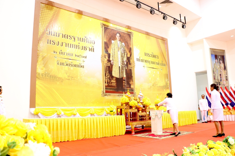 วันที่ 2 มีนาคม 2567 เวลา 09.30 น. นางสาวชนิตา แช่มตระกูล เกษตรและสหกรณ์จังหวัดร้อยเอ็ด พร้อมด้วยเจ้าหน้าที่สำนักงานเกษตรและสหกรณ์จังหวัดร้ยเอ็ด ร่วมพิธีถวายสักการะและวางพานพานพุ่ม เนื่องในวันมาตรฐานฝีมือแรงงานแห่งชาติ ประจำปี 2567 ณ หอประชุมจังหวัดร้อยเอ็ด โดยมี นายชูศักดิ์ ราชบุรี รองผู้ว่าราชการจังหวัดร้อยเอ็ด เป็นประธานในพิธี พร้อมด้วย หัวหน้าส่วนราชการ อัยการ ทหาร ตำรวจ คณะกรรมการเหล่ากาชาติ ชมรมแม่บ้านมหาดไทย ผู้บริหารสถานศึกษา และองค์กรปกครองส่วนท้องถิ่น เข้าร่วมพิธีฯ เพื่อเป็นการเทิดพระเกียรติแด่พระองค์ท่านที่มีพระมหากรุณาธิคุณต่อปวงชนชาวไทย และทรงพระปรีชาสามารถด้านการช่าง รวมทั้งทรงให้ความสำคัญในการพัฒนาฝีมือแรงงานของช่างไทยให้มีความเป็นมาตรฐาน