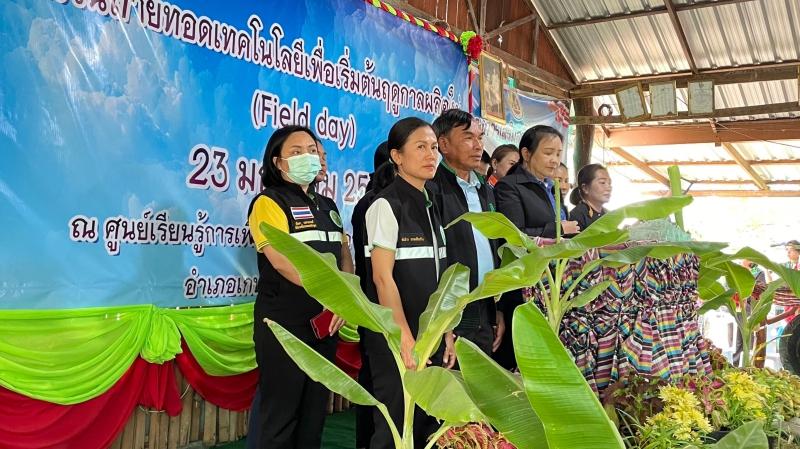 วันที่ 23 มกราคม 2567 เวลา 09.30 น. นางสาวชนิตา แช่มตระกูล เกษตรและสหกรณ์จังหวัดร้อยเอ็ด มอบหมายให้นางสาวกัลยา เสลามาตย์ หัวหน้ากลุ่มสารสนเทศการเกษตร พร้อมด้วยเจ้าหน้าที่สำนักงานเกษตรและสหกรณ์จังหวัดร้อยเอ็ด เข้าร่วมงานวันถ่ายทอดเทคโนโลยีเพื่อเริ่มต้นฤดูกาลผลิตใหม่ (Field Day) ประจำปี พ.ศ.2567 ณ ศูนย์เรียนรู้การเพิ่มประสิทธิภาพการผลิตสินค้าเกษตร (ศพก.) อำเภอเกษตรวิสัย จังหวัดร้อยเอ็ด โดยมี นางสาวยวงเพชร อิฐรัตน์ รักษาราชการแทนเกษตรจังหวัดร้อยเอ็ด เป็นประธานในพิธีเปิดงานดังกล่าว ซึ่งการจัดงานดังกล่าวมีวัตถุประสงค์เพื่อกระตุ้นให้เกษตรกรเริ่มต้นการผลิตในปีการเพาะปลูกใหม่ โดยใช้เทคโนโลยีและภูมิปัญญาที่เหมาะสมกับพื้นที่ ซึ่งภายในงานได้มีการจัดนิทรรศการให้ความรู้ด้านเกษตร นวัตกรรมและเทคโนโลยีการเกษตร และการจัดฐานการเรียนรู้เกี่ยวกับเทคโนโลยี นวัตกรรมและองค์ความรู้ที่เห็นว่าเหมาะสมกับเกษตรกรในพื้นที่ให้เกษตรกรที่มาร่วมงานได้เรียนรู้ จำนวน 5 สถานี ได้แก่ 1) สถานีการเพาะเลี้ยงและขยายพันธุ์แหนแงเพื่อเพิ่มผลผลิตข้าว 2) สถานีการใช้สารชีวภัณฑ์ 3) สถานีการทำน้ำหมัก+ปุ่ยหมัก 4) สถานีการแปรรูปข้าว 5) สถานีการใช้เทคโนโลยีและนวัตกรรม โดยสำนักงานเกษตรและสหกรณ์หวัดร้อยเอ็ดได้ร่วมจัดนิทรรศการเพื่อให้ความรู้แก่เกษตรกรผู้ที่มาร่วมงาน โดยนำเสนอความรู้เกี่ยวกับการทำการเกษตรรูปแบบเกษตรกรรมยั่งยืน ประกอบด้วย เกษตรอินทรีย์ เกษตรทฤษฏีใหม่ เกษตรผสมผสาน เกษตรธรรมชาติ และวนเกษตร