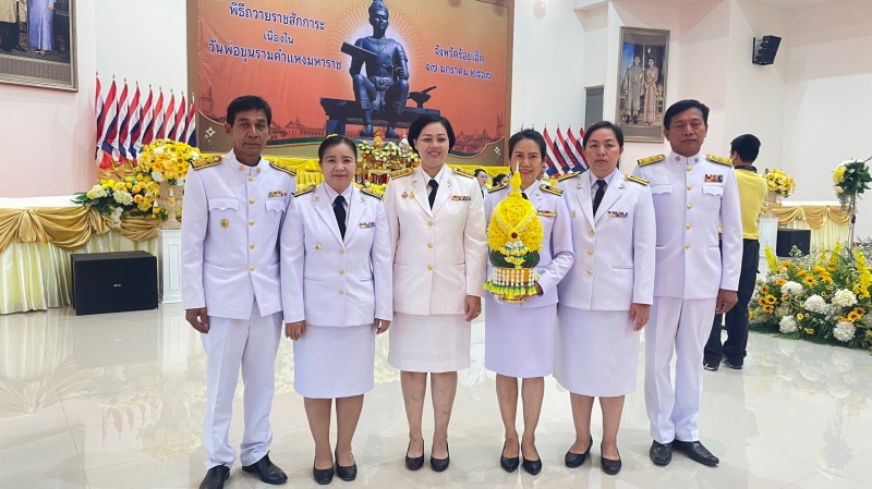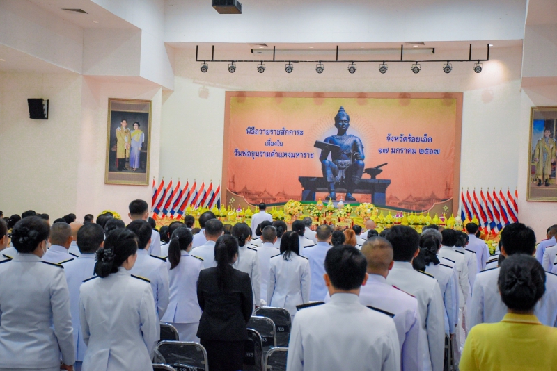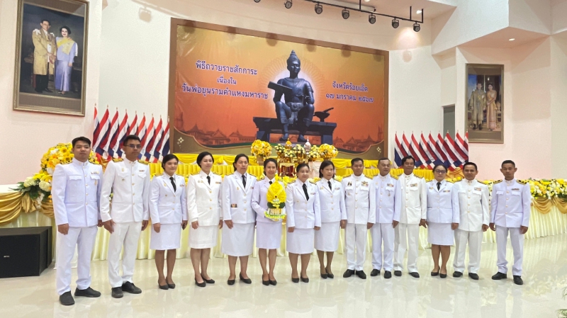 วันที่ 17 มกราคม 2567 เวลา 07.30 น. นางสาวชนิตา แช่มตระกูล เกษตรและสหกรณ์จังหวัดร้อยเอ็ด พร้อมด้วยหัวหน้าส่วนราชการสังกัดกระทรวงเกษตรและสหกรณ์จังหวัดร้อยเอ็ด และเจ้าหน้าที่สำนักงานเกษตรและสหกรณ์จังหวัดร้อยเอ็ด เข้าร่วมพิธีวางพานพุ่มดอกไม้สด เนื่องในวันพ่อขุนรามคำแหงมหาราช ประจำปี พ.ศ.2567 ณ หอประชุมจังหวัดร้อยเอ็ด อำเภอเมือง จังหวัดร้อยเอ็ด โดยมี นายทรงพล ใจกริ่ม ผู้ว่าราชการจังหวัดร้อยเอ็ด เป็นประธานในพิธี เพื่อเป็นการถวายความจงรักภักดี และน้อมรำลึกในพระมหากรุณาธิคุณ