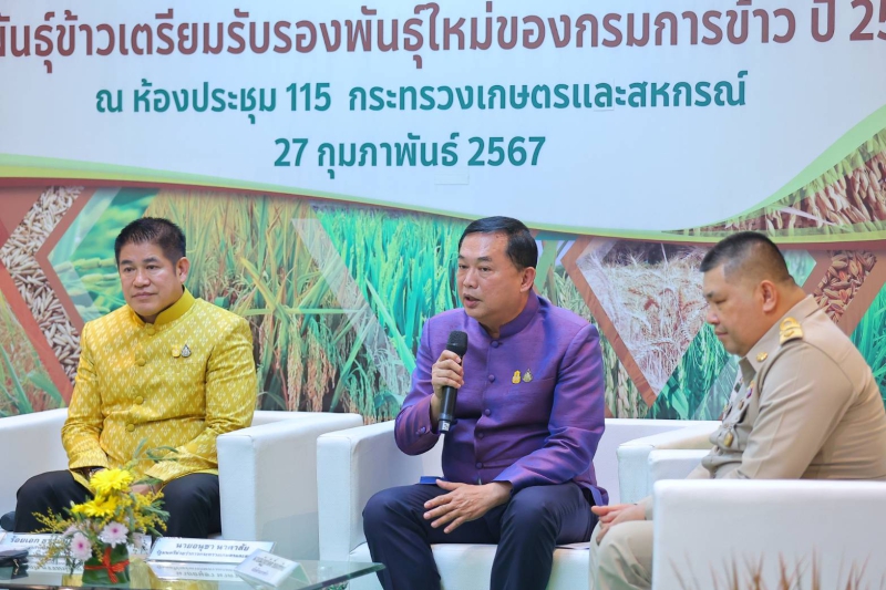 ร้อยเอก ธรรมนัส เปิดเผยว่า กระทรวงเกษตรและสหกรณ์ ได้ให้ความสำคัญกับงานวิจัยและพัฒนาพันธุ์ข้าว จึงได้มอบหมายให้กรมการข้าว วิจัยและพัฒนาพันธุ์ข้าวพันธุ์ใหม่ ๆ ที่ตอบโจทย์ความต้องการของพี่น้องชาวนาในทุกมิติ ซึ่งกรมการข้าวมีการวางแผนการรับรองพันธุ์ข้าวในทุกปี อย่างน้อยปีละ 4 – 5 พันธุ์ โดยพันธุ์ข้าวใหม่ ๆ ที่จะรับรองพันธุ์นั้นต้องเร่งรัดงานวิจัยพัฒนาให้สามารถทนแล้งและทนน้ำท่วมได้ในพันธุ์เดียวกัน อีกทั้งมีความเหมาะสมในการปลูกแต่ละพื้นที่ในประเทศไทย ตลอดจนการลดการปล่อยก๊าซเรือนกระจกเพื่อให้มีโอกาสแข่งขันกับประเทศคู่แข่งได้