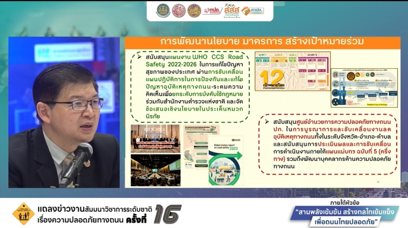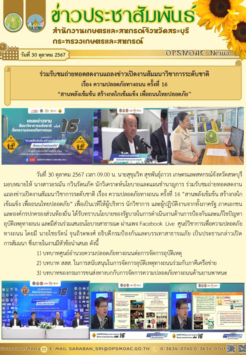 ร่วมรับชมถ่ายทอดสดงานแถลงข่าวเปิดงานสัมมนาวิชาการระดับชาติ เรื่อง ความปลอดภัยทางถนน ครั้งที่ 16 “สานพลังเข้มข้น สร้างกลไกเข้มแข็ง เพื่อถนนไทยปลอดภัย”