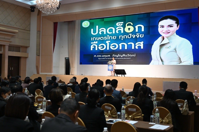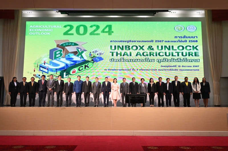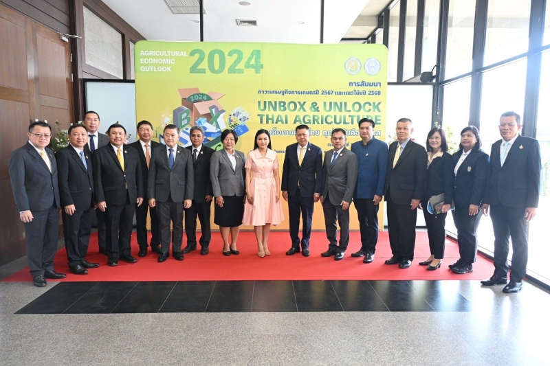 ศ.ดร.นฤมล ภิญโญสินวัฒน์ รัฐมนตรีว่าการกระทรวงเกษตรและสหกรณ์ กล่าวเปิดงานพร้อมปาฐกถาพิเศษงานสัมมนาใหญ่ประจำปีสำนักงานเศรษฐกิจการเกษตร (สศก.) “ภาวะเศรษฐกิจการเกษตรปี 2567 และแนวโน้มปี 2568 Unbox & Unlock Thai Agriculture : ปลดล็อกเกษตรไทย ทุกปัจจัยคือโอกาส” โดยมี นายประยูร อินสกุล ปลัดกระทรวงเกษตรและสหกรณ์ และผู้บริหารหน่วยงานในสังกัด เข้าร่วม ณ ห้องมัฆวานรังสรรค์ สโมสรทหารบก กรุงเทพฯ ว่า ปัจจุบันไทยมีเนื้อที่ทางการเกษตรรวม 147.73 ล้านไร่ หรือร้อยละ 46.7 ของเนื้อที่ทั้งประเทศ มีประชากรอยู่ในภาคเกษตรกว่า 30 ล้านคน เป็นแรงงานเกษตร 19.72 ล้านคน และมีจำนวนครัวเรือนเกษตรประมาณ 7.9 ล้านครัวเรือน โดยในปี 2566 GDP ภาคเกษตร มีสัดส่วนอยู่ที่ร้อยละ 8.58 ของ GDP ทั้งประเทศ ลดลงจาก 10 ปีที่แล้ว ซึ่ง GDP ภาคเกษตร มีสัดส่วนที่ร้อยละ 11.32 แม้ว่าสัดส่วนของภาคเกษตรจะลดลง แต่มูลค่า GDP ภาคเกษตรยังคงเพิ่มขึ้นจาก 660,365 ล้านบาท ในปี 2556 เป็น 693,834 ล้านบาท ขณะที่ภาคเกษตรไทยยังต้องเผชิญกับความท้าทายที่หลากหลาย อาทิ การเปลี่ยนแปลงสภาพภูมิอากาศ ความขัดแย้งทางภูมิรัฐศาสตร์ในหลายภูมิภาคทั่วโลกที่เร่งตัวขึ้น การเปลี่ยนแปลงแนวนโยบายของสหรัฐอเมริกา อาจทำให้สงครามทางการค้ากลับมามีความรุนแรงอีกครั้ง ขณะที่ประเทศจีนซึ่งเป็นประเทศคู่ค้าหลักของไทย ยังเผชิญกับปัญหาภาคอสังหาริมทรัพย์อย่างต่อเนื่อง นอกจากนี้ การปรับเปลี่ยนกฎกติกาด้านการค้าและการลงทุนของโลก รวมทั้งมาตรการกีดกันทางการค้าที่มิใช่ภาษี โดยเฉพาะมาตรการด้านสิ่งแวดล้อม ทำให้ประเทศต่าง ๆ ต้องเร่งปรับตัวเพื่อเพิ่มความสามารถในการแข่งขัน และลดการพึ่งพาจากต่างประเทศ