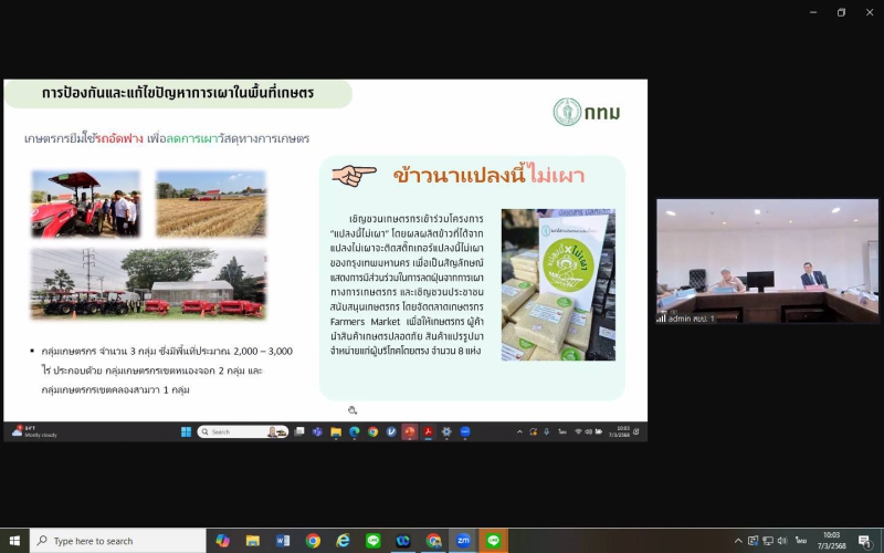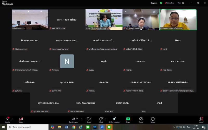 วันที่ 7 มีนาคม 2568 นางสาวเสาวลักษณ์ ศุภกมลเสนีย์ ผู้ตรวจราชการกระทรวงเกษตรและสหกรณ์ รับผิดชอบเขตตรวจราชการส่วนกลาง กรุงเทพฯ เข้าร่วมการประชุมการตรวจราชการแบบบูรณาการตามแผนการตรวจราชการ ของผู้ตรวจราชการประจำปีงบประมาณ พ.ศ. 2568 รอบที่ 1 ส่วนกลาง (กรุงเทพมหานคร) ผ่านสื่ออิเล็กทรอนิกส์ระบบการประชุมทางไกล Zoom Cloud Meetings โดยมีผู้ตรวจราชการสำนักนายกรัฐมนตรี เขตตรวจราชการส่วนกลาง (นางสาวรี่นวดี สุวรรณมงคล) เป็นประธาน ผู้เข้าร่วมประชุมประกอบด้วย ผู้ตรวจราชการกระทรวง และที่ปรึกษาผู้ตรวจราชการภาคประชาชนในพื้นที่เขตตรวจราชการส่วนกลาง และหัวหน้าส่วนราชการในสังกัดกรุงเทพมหานครที่เกี่ยวข้อง โดยมีประเด็นสำคัญ ดังนี้
