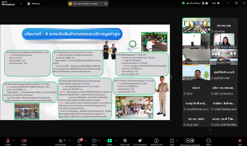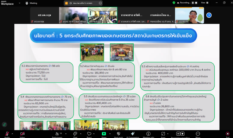 ในการประชุมติดตามผลการดำเนินงานโครงการตามแผนการตรวจราชการของผู้ตรวจราชการกระทรวงเกษตรและสหกรณ์ เขตตรวจราชการที่ 6 จังหวัดพังงา เพื่อรับทราบผลการดำเนินงานโครงการต่าง ๆ ตามแผนการตรวจราชการตามรูปแบบการรายงาน Monitoring plus ซึ่งการรายงานจากหน่วยงานที่เกี่ยวข้องสามารถรายงานผลการดำเนินงาน 9 นโยบาย ของกระทรวงเกษตรและสหกรณ์ครบถ้วน ในการนี้ นายกฤษ อุตตมะเวทิน ผู้ตรวจราชการกระทรวงเกษตรและสหกรณ์ ให้ข้อคิดเรื่องการผลิตในอนาคตว่าอนาคตเกษตรกรไทยจะลดน้อยลงและปัจจุบันเกษตรกรอายุเฉลี่ย 60 ปี ดังนั้นมีความจำเป็นที่จะต้องดึงเกษตรกรรุ่นใหม่เข้ามาทดแทน โดยสร้างแรงจูงใจให้เกษตรกรรุ่นใหม่ โดยการนำนวัตกรรมเทคโนโลยีมาใช้สร้างให้เป็นผู้ประกอบการ เพราะจะได้เปรียบเรื่องต้นทุน เนื่องจากมีวัตถุดิบในมือ จึงจำเป็นต้องเพิ่มมูลค่าให้กับวัตถุดิบในมือ เพื่อเพิ่มรายได้/กำไรให้มากขึ้นเพิ่มมากขึ้นและมีความยั่งยืนในการประกอบอาชีพด้านเกษตรกร