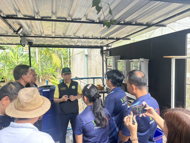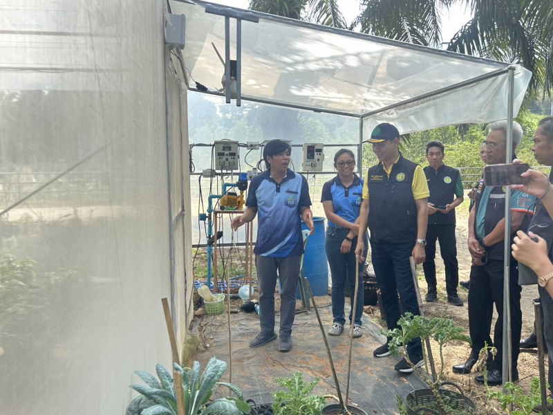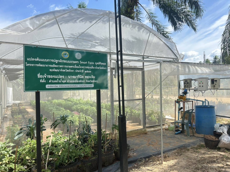 จากนั้นช่วงบ่ายลงพื้นที่กินดีฟาร์ม หมู่ที่ 2 ตำบลถ้ำน้ำผุด อำเภอเมืองพังงา จังหวัดพังงา ลักษณะของพื้นที่ Young smart farmer กินดี ชีวิตดี Goodlife พืชผักปลอดภัยสร้างคลังอาหารชุมชน แหล่งปลูกผักไฮโดรโปนิกส์โรงเรือน ผักไทย และเมลอน ซึ่งมีการขยายผลงานวิจัยส่งเสริมการใช้ปุ๋ยที่เหมาะสมสำหรับผักไฮโดรโปนิกส์ในโรงเรือนเพื่อลดต้นทุนการผลิต โดยความร่วมมือสำนักงานเกษตรจังหวัดพังงา ร่วมกับคณะทรัพยากรธรรมชาติมหาวิทยาลัยสงขลานครินทร์ โรงเรือนเกษตรอัจฉริยะระบบ smart farm การปลูกพืชมูลค่าสูงเช่นปลูกเมล่อน เคล การแปรรูปผลผลิตทางด้านการเกษตร เป็นกลุ่มแปลงใหญ่ผักปัจจุบันมีสมาชิก 34 คน พื้นที่รวม 34 ไร่ ปริมาณผลผลิตของกลุ่มแปลงใหญ่ผักไทย 3,900 กิโลกรัม/ไร่/ปี ผักสลัด 3,600 กิโลกรัม/ไร่/ปี สอดคล้องนโยบายกระทรวงเกษตร ตลาดนำการผลิต สร้างความเข้มแข็งในสถานบันเกษตรกร และเป็นศูนย์เรียนรู้ต้นแบบแก่ผู้ที่สนใจ