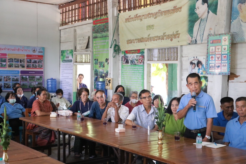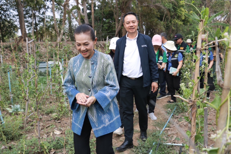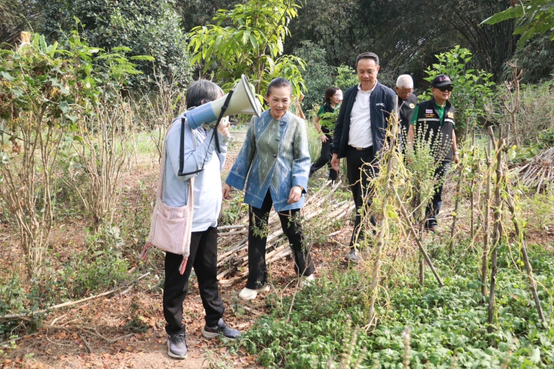 จากนั้น ลงพื้นที่ติดตามการทำการเกษตรที่เป็นมิตรกับสิ่งแวดล้อม ร่วมกับเกษตรและสหกรณ์จังหวัดลำปาง และหัวหน้าส่วนราชการสังกัดกระทรวงเกษตรและสหรกรณ์ จังหวัดลำปาง ณ วิสาหกิจชุมชนกลุ่มฮักน้ำจาง ตำบลบ้านกิ่ว อำเภอแม่ทะ จังหวัดลำปาง ซึ่งเป็นกลุ่มที่มีความเข้มแข็งและมีการบริหารงานที่มีประสิทธิภาพ โดยแนวคิดจากคนรุ่นใหม่ ได้รับรางวัล “ชุมชนต้นแบบเกษตรอินทรีย์ระดับกลุ่มจังหวัดภาคเหนือตอนบนปี 2563 ระดับดีเด่น” และรางวัลเลิศรัฐ ประจำปี 2566 สาขาบริหารราชการแบบมีส่วนร่วม ระดับดีเด่น ประเภทร่วมใจแก้จน ที่เกิดจากการรวมกลุ่มชุมชนที่เข้มแข็ง ทำการเกษตรที่เป็นมิตรกับสิ่งแวดล้อม (ปลอดการเผา ปลอดสารเคมี) ใช้หลักการ ตลาดนำ นวัตกรรมเสริม เพิ่มรายได้ เพื่อให้เกิดความยั่งยืนในอาชีพ มีกิจกรรมปลูกผักอินทรีย์ (ผักพื้นบ้าน/ผักตามฤดูกาล) ได้รับรองมาตรฐาน Organic Thailand รวมทั้งเลี้ยงสัตว์ ได้แก่ วัว ควาย ไก่ไข่ และเลี้ยงปลา มีการผลิตกล้าพันธุ์/เมล็ดพันธุ์พืช การผลิตปุ๋ยอินทรีย์ มีสินค้าเด่น ได้เแก่ ผักเชียงดา ซึ่งมีการนำมาปสร้างมูลค่าเพิ่ม โดยผลิตเป็นชาเชียงดา และแคปซูลเชียงดา เป็นต้น