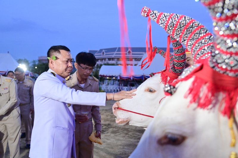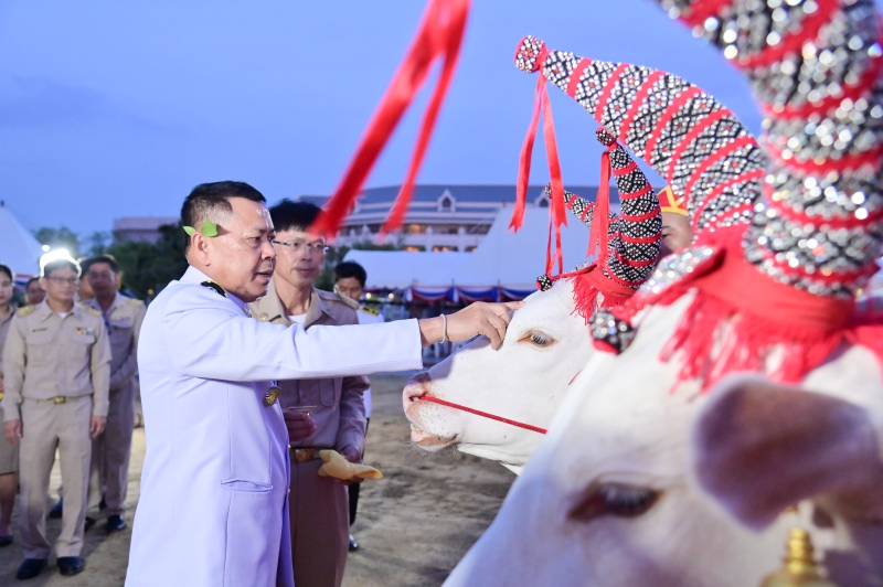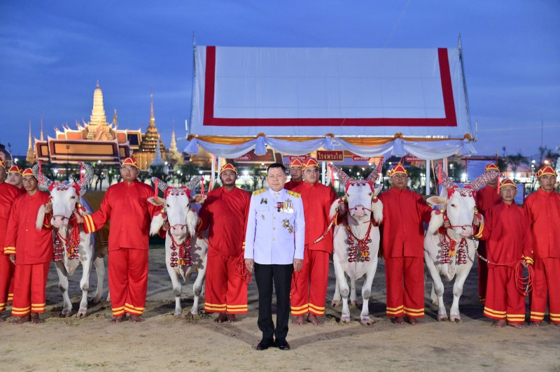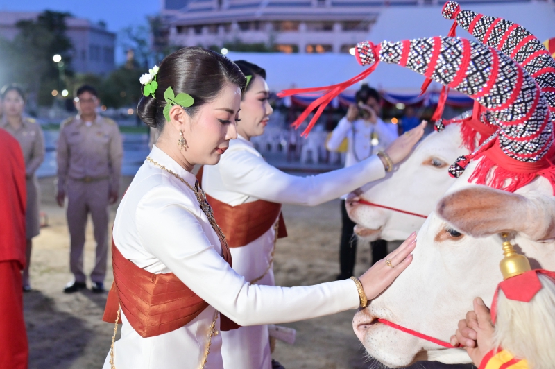 วันที่ 8 พฤษภาคม 2568 เวลาประมาณ 18.30 น. นายประยูร อินสกุล ปลัดกระทรวงเกษตรและสหกรณ์ ผู้ทำหน้าที่พระยาแรกนาในพระราชพิธีพืชมงคลจรดพระนังคัลแรกนาขวัญ ประจำปี พุทธศักราช 2568 และเทพีคู่หาบทอง เทพีคู่หาบเงิน ทำพิธีล้างมือพระยาแรกนาและเจิมหน้าพระโค เพื่อความเป็นสิริมงคลและสร้างความคุ้นเคยกับพระโคแรกนาก่อนการเริ่มพระราชพิธีจรดพระนังคัลแรกนาขวัญในเช้าวันรุ่งขึ้น โดยพระโคแรกนาในปีนี้ คือ พระโคพอ และพระโคเพียง พระโคคู่สำรอง คือ พระโคเพิ่ม และพระโคพูล ณ โรงพระโคยืน มณฑลพิธีท้องสนามหลวง