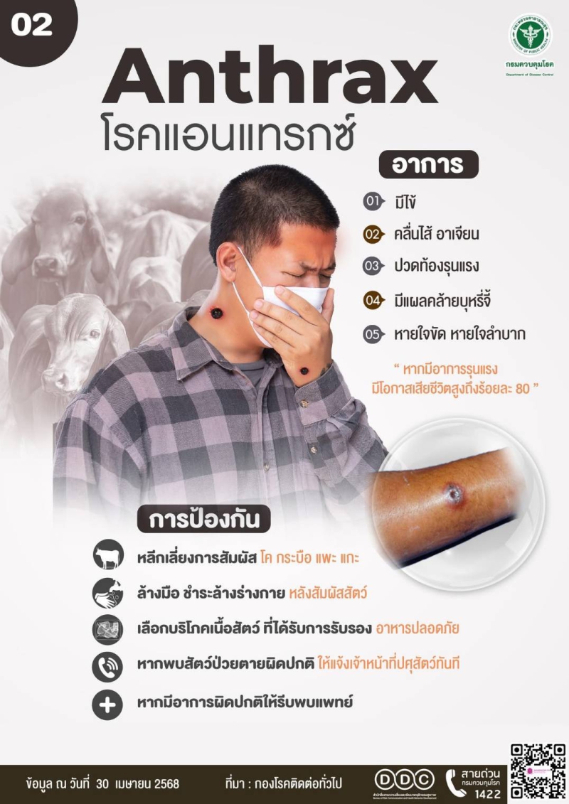 รู้จัก โรค #แอนแทรกซ์ (Anthrax) เป็นโรคติดต่อจากสัตว์สู่คน ที่เป็นโรคติดต่อร้ายแรง