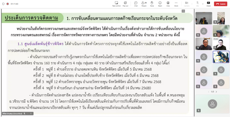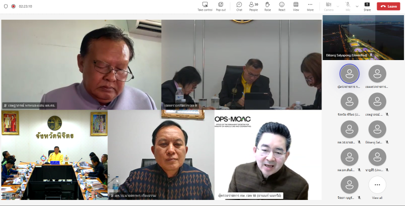 โดยมีพันตำรวจเอก ประทีป เจริญกัลป์ ผู้ตรวจราชการสำนักนายกรัฐมนตรี เขตตรวจราชการที่ 18 เป็นประธานการประชุม ร่วมกับคณะผู้ตรวจราชการกระทรวง เขตตรวจราชการที่ 18 และที่ปรึกษาผู้ตรวจราชการภาคประชาชนของจังหวัดพิจิตร พร้อมด้วยเกษตรและสหกรณ์จังหวัดพิจิตร (นางสาวอุไรรัตน์ คำชื่นวงศ์) หัวหน้าส่วนราชการในพื้นที่ และเจ้าหน้าที่ที่เกี่ยวข้อง เข้าร่วมประชุม ผ่านสื่ออิเล็กทรอนิกส์ โดยมีประเด็นการตรวจติดตาม ดังนี้