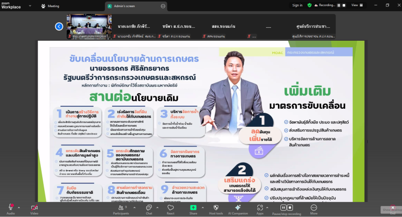 ต่อมาเป็นประธานในการประชุมตรวจติดตามผลการดำเนินงานตามแผนการตรวจราชการของผู้ตรวจราชการกระทรวงเกษตรและสหกรณ์ ประจำปีงบประมาณ พ.ศ. 2568 รอบที่ 2 แบบมุ่งผลสัมฤทธิ์ พร้อมด้วยผู้ช่วยผู้ตรวจราชการกระทรวงเกษตรและสหกรณ์ (ระดับกรม) ที่ปรึกษาผู้ตรวจราชการภาคประชาชน เกษตรและสหกรณ์จังหวัดขอนแก่น (นายสมศักดิ์ วิวิธเกยูรวงศ์) หัวหน้าส่วนราชการในสังกัดกระทรวงเกษตรและสหกรณ์ และเจ้าหน้าที่ที่เกี่ยวข้อง ณ ห้องประชุมพระธาตุขามแก่น ชั้น 2 ศาลากลางจังหวัดขอนแก่น (หลังเก่า)