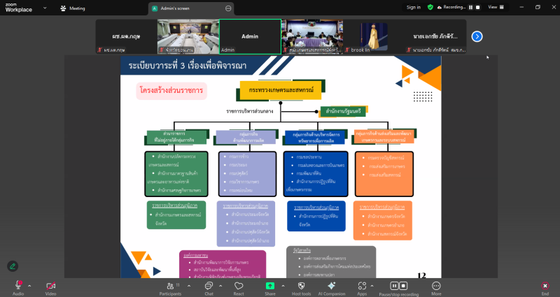 - ให้แบ่งปัญหาอุปสรรค ออกเป็น 3 ระดับ ได้แก่ 1.จัดการได้ภายในหน่วยงาน 2.บูรณาการร่วมกันภายในจังหวัด ผอ.เขต ผตร.กรม สนับสนุนแก้ปัญหา 3.ปัญหาที่แก้ไม่ได้ในพื้นที่ จำเป็นต้องขอรับการสนับสนุนจากส่วนกลาง และให้นำโครงการและภารกิจจัดจำแนกเข้ากับกลุ่มคัสเตอร์เพื่อที่จะได้มองเห็นภาพรวมและแนวทางของการปฏิบัติงานที่ชัดเจนยิ่งขึ้น