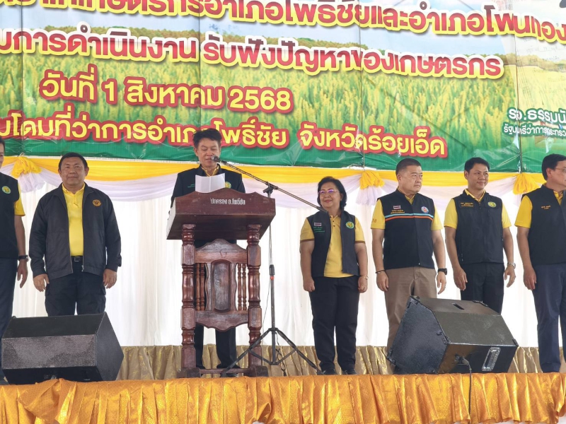 จากนั้น เดินทางลงพื้นที่ต่อไปยัง โรงเรียนหนองพอกวิทยาลัย ต.รอบเมือง อ.หนองพอก และหอประชุมที่ว่าการอำเภอโพธิ์ชัย ต.ขามเบี้ย อ.โพธิ์ชัย จ.ร้อยเอ็ด เพื่อพบปะเกษตรกรและรับฟังปัญหาในพื้นที่ พร้อมมอบโฉนดเพื่อการเกษตร และปัจจัยการผลิตด้านการเกษตรให้แก่เกษตรกร