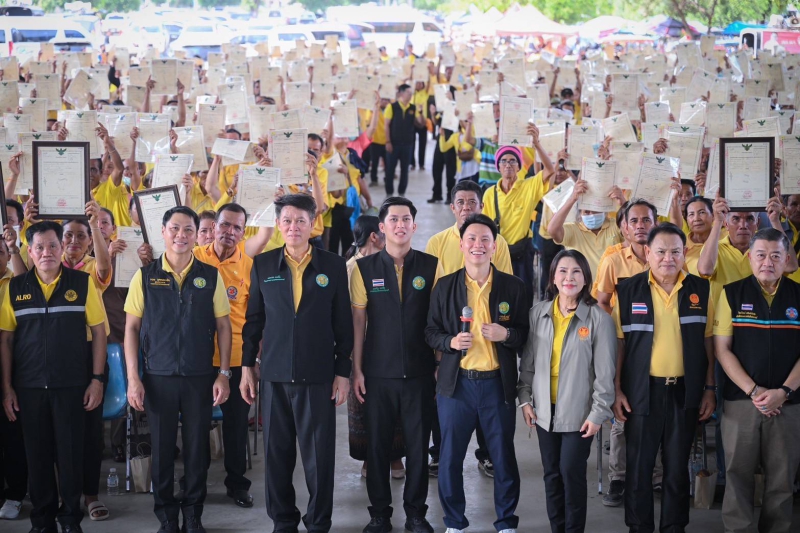 กว่า 2,000 ราย เนื้อที่รวมประมาณ 20,127 ไร่ และมอบโฉนดต้นยาง จำนวน 100 ฉบับ โฉนดเพื่อการเกษตร เป็นนโยบายสำคัญของกระทรวงเกษตรและสหกรณ์ ที่มุ่งเน้นให้เกษตรกรสามารถใช้ประโยชน์จากสินทรัพย์ เพื่อสร้างโอกาสในการมีอาชีพ มีรายได้ และมีความมั่นคงในชีวิต เป็นการพัฒนาสิทธิและเพิ่มมูลค่าในที่ดินรัฐให้แก่เกษตรกร ให้สามารถนำไปต่อยอดในการเข้าถึงแหล่งเงินทุนได้เพิ่มมากขึ้น มีทางเลือกในการพัฒนาที่ดินและพัฒนาอาชีพของตนเอง ขณะเดียวกัน กระทรวงเกษตรฯ ได้เดินหน้าผลักดันโครงการโฉนดต้นไม้และโฉนดต้นยาง ควบคู่ไปกับที่ดิน ส.ป.ก. เพื่อพัฒนาศักยภาพให้เป็นสินทรัพย์ ใช้เป็นหลักประกันในระบบสินเชื่อ เชื่อมโยงกับสถาบันการเงิน เพื่อเป็นการสร้างคุณค่าให้เพิ่มขึ้นอีกด้วย