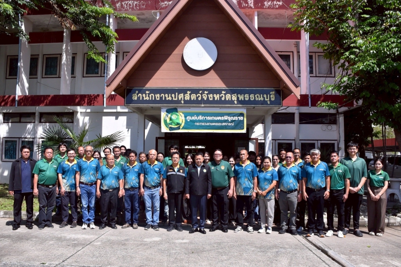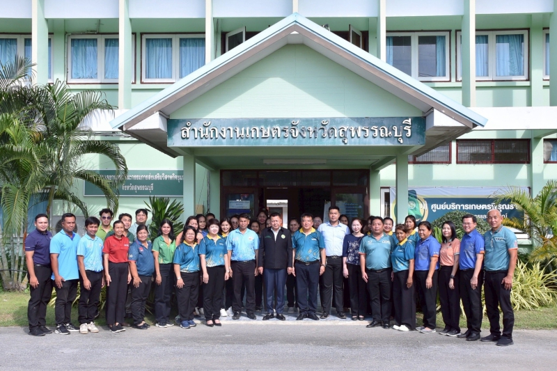 จากนั้น ปลัดกระทรวงเกษตรและสหกรณ์ ได้เดินทางไปยังหน่วยงานในสังกัดกระทรวงเกษตรและสหกรณ์ ณ อำเภอเมืองสุพรรณบุรี จังหวัดสุพรรณบุรี เพื่อตรวจเยี่ยมและให้กำลังใจเจ้าหน้าที่ในการปฏิบัติงาน โดยมีหัวหน้าส่วนราชการ และเจ้าหน้าที่ของแต่ละหน่วยงานให้การต้อนรับ