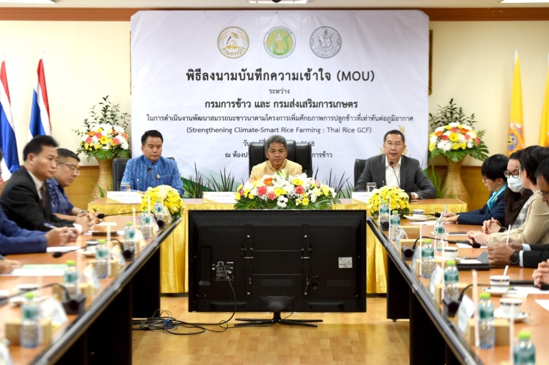 สำหรับการลงนามบันทึกความเข้าใจดังกล่าว เป็นการร่วมมือกันเพื่อสนับสนุนส่งเสริมการพัฒนาศักยภาพและสมรรถนะชาวนาไทย ในการปลูกข้าวที่เท่าทันต่อสภาพภูมิอากาศ และสามารถถ่ายทอดเทคโนโลยีการเกษตรที่เท่าทันต่อภูมิอากาศ (Climate Smart Agricultue : CSA) มาเพิ่มประสิทธิภาพในการผลิตข้าว รวมทั้งหลีกเลี่ยง ลดผลกระทบ และเสริมสร้างศักยภาพการปรับตัวต่อสภาพอากาศของชาวนาในการปลูกข้าว โดยจะเป็นการร่วมมือกันพิจารณาจัดทำแผนส่งเสริมและพัฒนาชาวนาตามเป้าหมายโครงการฯ ส่งเสริมและพัฒนาการเกษตรที่เท่าทันต่อภูมิอากาศ ผ่านกลไกสำคัญของกรมการข้าว และกรมส่งเสริมการเกษตร เช่น ศูนย์ข้าวชุมชน นาข้าวแปลงใหญ่ ศูนย์จัดการดิน และปุ๋ยชุมชน (ศดปช.) ศูนย์จัดการศัตรูพืชชุมชน (ศจช.) กลุ่มแม่บ้านเกษตรกร ศูนย์เรียนรู้การเพิ่มประสิทธิภาพการผลิตสินค้าเกษตร (ศพก.) Smart Farmer Young Smart Farmer ชาวนาอาสา และอาสาสมัครเกษตร ตลอดจนการดำเนินงานพัฒนาคู่มือการพัฒนาชาวนาเพื่อการปลูกข้าวด้วยเทคโนโลยีที่เท่าทันต่อภูมิอากาศ และถ่ายทอดองค์ความรู้สู่กลุ่มชาวนาเป้าหมายของโครงการต่อไป