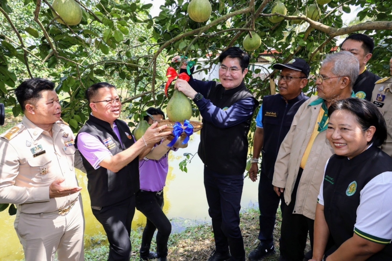 วันที่ 17 กุมภาพันธ์ 2568 นางสาวทัศนีย์ เมืองแก้ว หัวหน้าผู้ตรวจราชการกระทรวงเกษตรและสหกรณ์ ร่วมลงพื้นที่ติดตามการตรวจราชการของรัฐมนตรีช่วยว่าการกระทรวงเกษตรและสหกรณ์ (นายอัครา พรหมเผ่า) ของศูนย์เรียนรู้การปลูกส้มโอทับทิมสยามและมอบปัจจัยการผลิต สาร พด. น้ำหมักชีวภาพ และโดโลไมท์ ให้ตัวแทนกลุ่มเกษตรกร ณ ศูนย์เรียนรู้การปลูกส้มโอทับทิมสยามบ้านแสงวิมาน ต.คลองน้อย อ.ปากพนัง จ.นครศรีธรรมราช