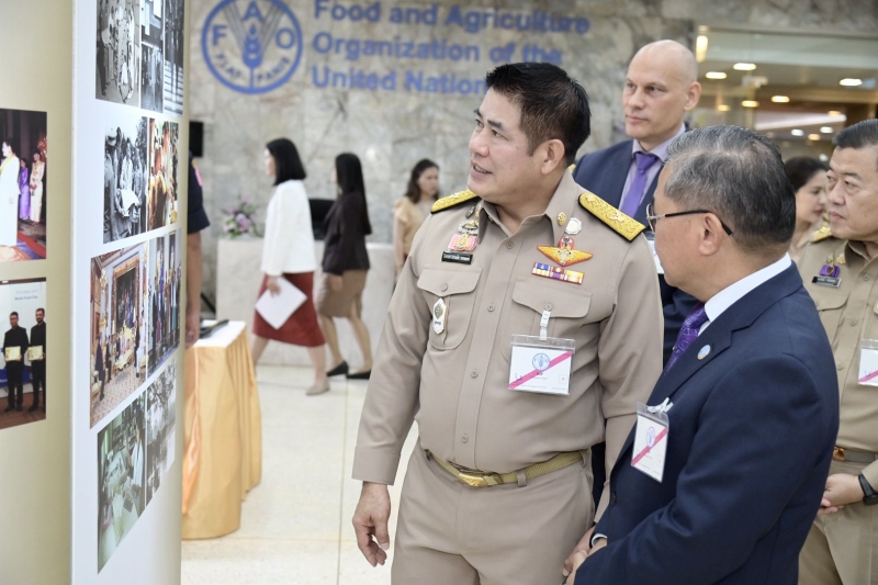 ในโอกาสนี้ รัฐมนตรีว่าการกระทรวงเกษตรและสหกรณ์ ได้ร่วมในพิธีเปิดนิทรรศการ “80 ปี FAO : Hand in Hand for Better Foods and a Better Future” ซึ่งมีการแสดงผลงานและนวัตกรรมการเกษตรเพื่อความมั่นคงทางอาหารของประเทศสมาชิกในภูมิภาค และร่วมสนทนากับผู้แทน FAO ประเทศต่าง ๆ เพื่อหารือแนวทางความร่วมมือด้านการเปลี่ยนผ่านระบบเกษตรและอาหารสู่ความยั่งยืน เชื่อมโยงกับเป้าหมาย SDGs ของสหประชาชาติ รวมถึงการเสริมบทบาทของประเทศไทยในฐานะศูนย์กลางความร่วมมือด้านเกษตรของภูมิภาคเอเชียและแปซิฟิก สำหรับงานวันอาหารโลกปีนี้มีผู้เข้าร่วมจำนวนกว่า 150 คน ประกอบด้วย ผู้แทนหน่วยงานภาครัฐ คณะทูตานุทูต ผู้แทนองค์การระหว่างประเทศ นักวิชาการ ภาคเอกชน เยาวชน และสื่อมวลชน โดยมีการปาฐกถาพิเศษจาก นาง พรอมิลา อาจาเรีย ริจาล ผู้ก่อตั้งและประธานองค์การพัฒนาสตรีเอเชียใต้ ในหัวข้อ “จับมือร่วมสร้างอาหารที่ดี เพื่อพรุ่งนี้ที่ดีกว่า” รวมทั้งมีการบรรยายจากผู้แทนจากเวียดนาม จีน และประเทศไทย นำเสนอแนวทางการพัฒนาเกษตรกรรมยั่งยืนและความร่วมมือใต้-ใต้ในภูมิภาค