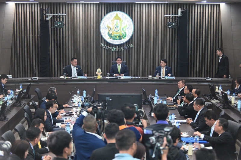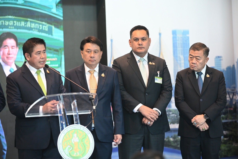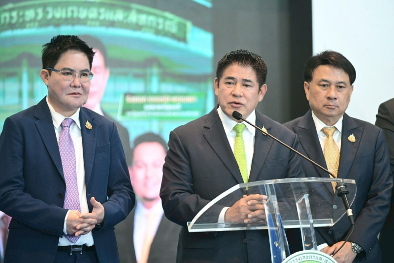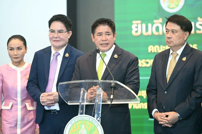 “ผมพร้อมด้วยรัฐมนตรีช่วยว่าการกระทรวงเกษตรและสหกรณ์ทั้ง 2 ท่าน รวมถึงผู้บริหาร ทีมข้าราชการ และบุคลากร พี่น้องครอบครัวกระทรวงเกษตรฯ ทุกคน มุ่งมั่นตั้งใจ จะร่วมกันขับเคลื่อนนโยบายอย่างไม่ย่อท้อ เราจะไม่ทิ้งเกษตรกรไว้ข้างหลัง และจะใช้ทุกศักยภาพที่มีเพื่อสร้างความมั่นคงให้กับภาคเกษตรกรรมไทย สู่การเป็นศูนย์กลางการเกษตรและอาหาร ของโลกอย่างแท้จริง ด้วยระยะเวลาอันสั้นจะเน้นขับเคลื่อนด้วยนโยบาย “ตลาดนำ นวัตกรรมเสริม เพิ่มรายได้” มุ่งแก้ปัญหาความเหลื่อมล้ำให้พี่น้องเกษตรกร โดยเฉพาะปัญหาราคาสินค้าเกษตรตกต่ำ อาทิ ได้มอบหมายการยางแห่งประเทศไทย เตรียมมาตรการขยายตลาดไปยังต่างประเทศและสนับสนุนการใช้ยางพาราในประเทศเพื่อรักษาเสถียรภาพด้านราคา ตั้งเป้าราคายางพาราต้องขยับสูงขึ้นตามลำดับ รวมถึงราคาผลผลิตทางการเกษตรอื่นๆ ไปจนถึงการปรับโฉมหน่วยเฉพาะกิจพญานาคราชที่จะออกปราบปรามสินค้าเกษตรเถื่อนอย่างเข้มข้น การแก้ปัญหานมล้นตลาดด้วยการบริหารจัดการน้ำนมทั้งระบบ การผลักดันองค์การตลาดเพื่อเกษตรกร (อ.ต.ก.) ให้เป็นตลาดและศูนย์กระจายสินค้าเพื่อเกษตรกรอย่างแท้จริง การแก้กฎหมายหรือระเบียบทางการเกษตรที่ซับซ้อนยุ่งยากให้มีความคล่องตัวมากขึ้น การแก้ปัญหาปลาหมอคางดำให้สิ้นซากเพื่อรักษาระบบนิเวศน์และลดผลกระทบต่อพี่น้องชาวประมง ส่วนนโยบายที่เป็นประโยชน์ต่อเกษตรกรได้เตรียมนำกลับมาดำเนินการต่อ ไม่ว่าจะเป็นโครงการชะลอการขายข้าวเปลือกนาปี/การส่งเสริมการแปรรูปข้าว เพื่อรองรับผลผลิตข้าวนาปีที่กำลังจะเก็บเกี่ยว ควบคู่ไปกับการบริหารจัดน้ำอย่างเป็นระบบและการแก้ปัญหาภัยพิบัติที่มีผลกระทบต่อภาคการเกษตร นอกจากนี้ ได้เล็งเห็นถึงปัญหาด้านต้นทุนการผลิตที่สูงขึ้นและเตรียมมาตรการลดค่าใช้จ่ายภาคการผลิตให้เห็นผลเป็นรูปธรรม ซึ่งจะช่วยลดรายจ่ายเพิ่มรายได้ให้แก่เกษตรกรอย่างยั่งยืน” ร้อยเอก ธรรมนัส กล่าว
