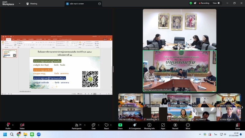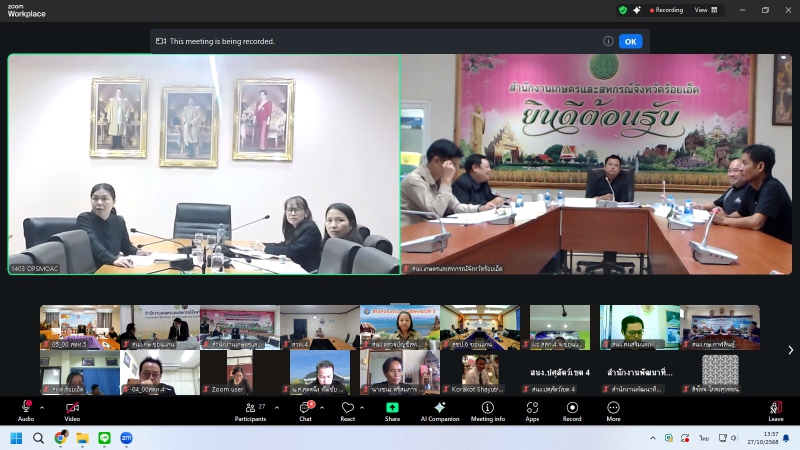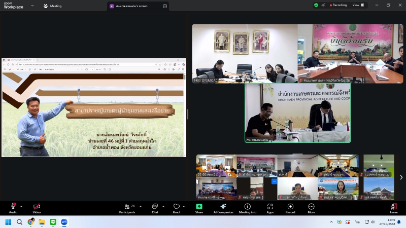 วันจันทร์ที่ 27 ตุลาคม 2568 เวลา 13.30 น. นายศรัญญู พูลลาภ ผู้ตรวจราชการกระทรวงเกษตรและสหกรณ์ เป็นประธานการประชุมคณะทำงานสรรหาปราชญ์เกษตรของแผ่นดิน ประจำปี 2568 ระดับเขตตรวจราชการที่ 12 (จังหวัดขอนแก่น ร้อยเอ็ด มหาสารคาม กาฬสินธุ์) ณ ห้องประชุมสำนักงานเกษตรและสหกรณ์จังหวัดร้อยเอ็ด และผ่านระบบออนไลน์สื่ออิเล็กทรอนิกส์ Web Conference โปรแกรม Zoom Meeting เพื่อพิจารณาคัดเลือกบุคคลที่สมควรได้รับการแต่งตั้งเพื่อเชิดชูเกียรติเป็นปราชญ์เกษตรของแผ่นดินปี 2568