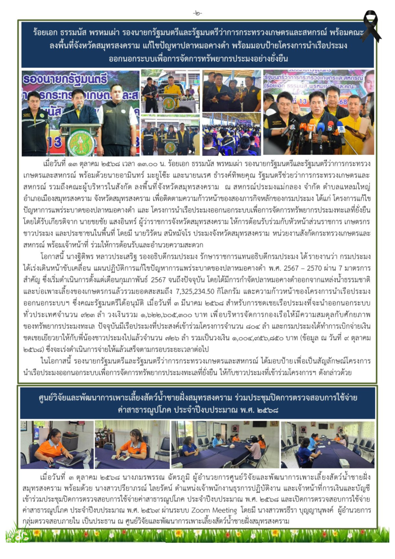จดหมายข่าว เกษตรและสหกรณ์สมุทรสงคราม ประจำเดือน ตุลาคม 2568