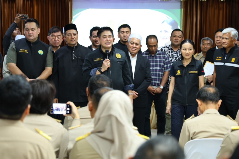 “รมว.ธรรมนัส” นำ 4 กระทรวง “กษ. ศธ. พม. กก.” ลง 3 จังหวัดชายแดนใต้ มุ่งพัฒนาคุณภาพชีวิตในทุกมิติ เน้นการบริหารจัดการน้ำอย่างเป็นระบบ การส่งเสริมอาชีพ พร้อมเร่งผลักดันราคายาง – ปาล์มน้ำมัน – โคเนื้อ และยกระดับอาหารฮาลาลเพื่อการส่งออก