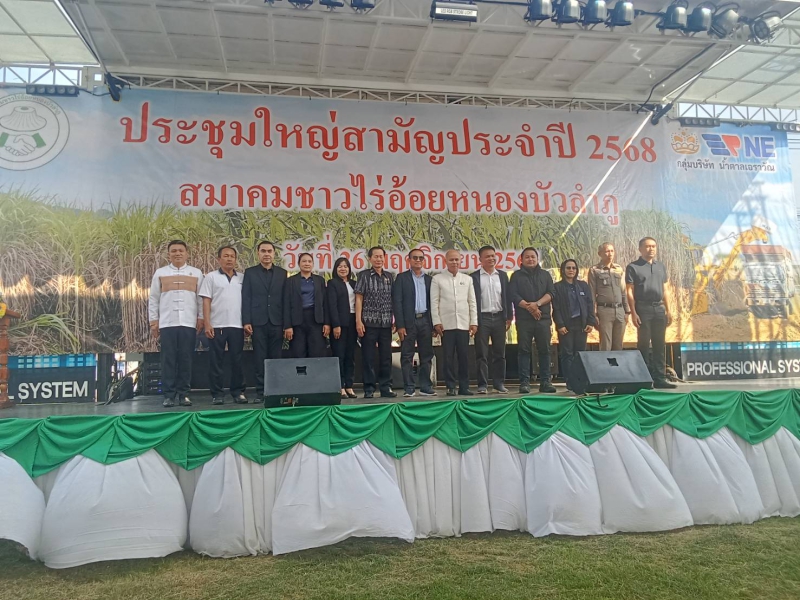 วันที่ 26 พฤศจิกายน 2568 เวลา 09.00 น. นางสาวทิพย์วรรณ อรุณศรี เกษตรและสหกรณ์จังหวัดหนองบัวลำภู มอบหมายให้ นางสาวจิราพา รักษาภักดี หัวหน้ากลุ่มยุทธศาสตร์พัฒนาการเกษตร ร่วมประชุมใหญ่สามัญสมาคมชาวไร่อ้อย ประจำปีการผลิต 2568/2569 เพื่อรับทราบสถานการณ์อ้อยและน้ำตาลทราย นโยบายส่งอ้อยประจำปี ฤดูการผลิต 2568/2569 พร้อมแลกเปลี่ยนความคิดเห็นเพื่อสร้างความเข้าใจอันดีระหว่างสมาคมชาวไร่อ้อยหนองบัวลำภูกับสมาชิกสมาคมชาวไร่อ้อย และรับทราบการคาดการณ์ราคาอ้อยและน้ำตาลทรายในปัจจุบัน-อนาคต โดยมี นายสุรศักดิ์ อักษรกุล ผู้ว่าราชการจังหวัดหนองบัวลำภู เป็นประธานในครั้งนี้ ณ บริเวณลานอเนกประสงค์ บริษัทน้ำตาล เอราวัณ จำกัด อำเภอนากลาง จังหวัดหนองบัวลำภู