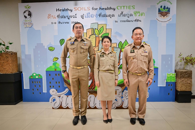 วันที่ 5 ธันวาคม 2568 คณะผู้ตรวจราชการกระทรวงเกษตรและสหกรณ์ ประกอบด้วย นางสาวเสาวลักษณ์ ศุภกมลเสนีย์ นายวิทยา แก้วมี และนายพรเทพ ศรีธนาธร เข้าเฝ้ารับเสด็จสมเด็จพระกนิษฐาธิราชเจ้า กรมสมเด็จพระเทพรัตนราชสุดาฯ สยามบรมราชกุมารี เสด็จพระราชดำเนินทรงเปิดงานวันดินโลก ปี 2568 ณ กรมพัฒนาที่ดิน เขตจตุจักร กทม. โดยในปีนี้กรมพัฒนาที่ดินได้กำหนดจัดงานวันดินโลก ภายใต้แนวคิด “Healthy soils for healthy cities ดินที่สมบูรณ์ สู่เมืองที่สมดุล เกื้อกูลชีวิต” ระหว่างวันที่ 5-9 ธันวาคม 2568 โดยมีวัตถุประสงค์ เพื่อน้อมรำลึกถึงพระมหากรุณาธิคุณของพระบาทสมเด็จพระบรมชนกาธิเบศร มหาภูมิพลอดุลยเดชมหาราช บรมนาถบพิตร พระมหากษัตริย์นักพัฒนา พระมหากษัตริย์นักพัฒนา พระผู้ทรงมีพระอัจฉริยภาพ พระมหากรุณาธิคุณด้านการจัดการดินอย่างยั่งยืน และเชิดชูพระเกียรติยศในฐานะทรงเป็นนักวิทยาศาสตร์ดินเพื่อมนุษยธรรม รวมถึงสร้างการรับรู้และความตระหนักในเรื่องดิน ซึ่งการขยายตัวของชุมชนเมืองอย่างรวดเร็ว อาจส่งผลกระทบกับการจัดการสิ่งแวดล้อมและโภชนาการที่ดี รวมทั้งการลดลงของความหลากหลายทางชีวภาพ และความมั่นคงด้านอาหาร ดังนี้การพัฒนาเมืองจึงต้องให้ความสำคัญควบคู่กับการจัดการสิ่งแวดล้อม
