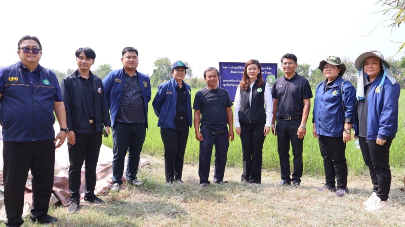เวลา 13.00 น. หัวหน้าผู้ตรวจราชการ ผู้ช่วยผู้ตรวจราชการกระทรวงเกษตรและสหกรณ์ และหัวหน้าส่วนราชการในสังกัดกระทรวงเกษตรและสหกรณ์ ลงพื้นที่ติดตามงานตามนโยบายจัดการทรัพยากรทางการเกษตร โครงการประยุกต์ใช้เทคโนโลยีการผลิตข้าวอย่างยั่งยืนเพื่อลดการปลดปล่อยก๊าซเรือนกระจก ณ แปลงนาข้าวนายสมเจตน์ กลัดเล็ก ประธาน ศพก. อำเภอบางใหญ่ Smart Farmer ด้านข้าว พื้นที่ 60 ไร่ พันธุ์ข้าวที่ปลูก ข้าวหอมปทุม 1 แปลงนาต้นแบบ มุ่งเน้นการลดสารเคมี เพื่อผลิตข้าวคุณภาพที่ปลอดภัย ลดการเผาไถหมกตอซัง เปลี่ยนฟางให้เป็นปุ๋ยด้วยการไถหมกแทนการเผา ช่วยปรับปรุงโครงสร้างดิน และลดมลพิษ PM 2.5 ลดสารเคมี บำรุงต้นข้าวด้วยฮอร์โมนไข่ ผลิตสารชีวภาพไล่แมลง ป้องกันเชื้อรา ปุ๋ยน้ำชีวภาพปลาหมักเสริมโปรตีน ลดต้นทุนใส่ปุ๋ยตามค่าวิเคราะห์ดิน ลดการใช้ปุ๋ยเกินความจำเป็น “ใส่ถูกสูตร ถูกเวลา ตามความต้องการของข้าว”