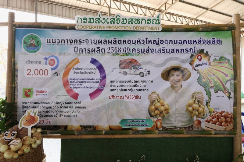 วันเสาร์ที่ 7 มีนาคม2569 ผู้ตรวจราชการกระทรวงเกษตรและสหกรณ์ เขตตรวจราชการที่15 (ดร.พรเทพ ศรีธนาธร) ได้รับมอบหมายจากปลัดกระทรวงเกษตรและสหกรณ์ (นายวิณะโรจน์ ทรัพย์ส่งสุข) ลงพื้นที่กับ นายนเรศ ธำรงค์ทิพยคุณ รัฐมนตรีช่วยว่าการกระทรวงเกษตรและสหกรณ์ ในงาน “รักนะจึงให้หอมฯ” มุ่งเชื่อมโยงเครือข่ายสหกรณ์ เพื่อบริหารจัดการผลผลิตแบบครบวงจร โดย นายนเรศ ธำรงค์ทิพยคุณ รัฐมนตรีช่วยว่าการกระทรวงเกษตรและสหกรณ์ เป็นประธานพิธีปล่อยคาราวานหอมหัวใหญ่ กิจกรรมกระจายผลผลิตหอมหัวใหญ่ออกนอกแหล่งผลิต มีนายนิรันดร์ มูลธิดา อธิบดีกรมส่งเสริมสหกรณ์ ผู้บริหารหน่วยงานที่เกี่ยวข้อง และเกษตรกรสมาชิกสหกรณ์ เข้าร่วม ณ สหกรณ์การเกษตรห้วยมะนาว จำกัด ตำบลดอนเปา อำเภอแม่วาง จังหวัดเชียงใหม่ เพื่อส่งเสริมการกระจายผลผลิตหอมหัวใหญ่ออกนอกแหล่งผลิต และสร้างโอกาสทางการตลาดให้แก่เกษตรกร