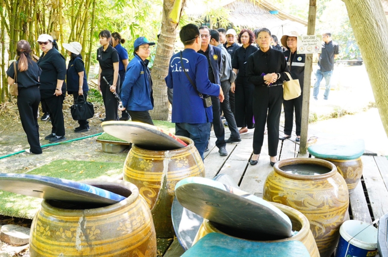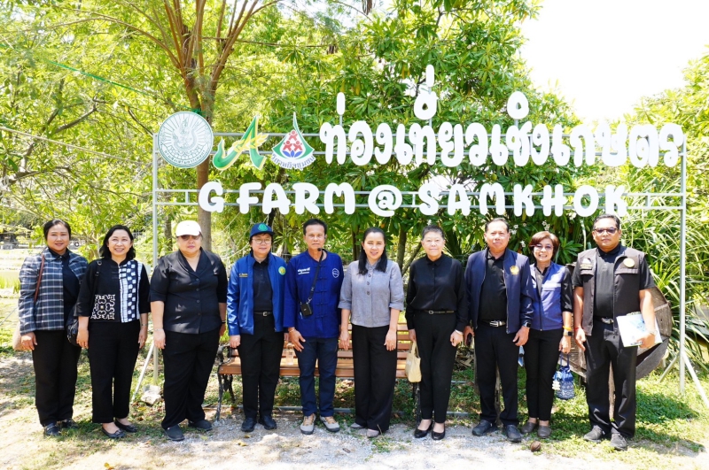 เวลา 13.00 น. หัวหน้าผู้ตรวจราชการ ผู้ช่วยผู้ตรวจราชการกระทรวงเกษตรและสหกรณ์ และหัวหน้าส่วนราชการในสังกัดกระทรวงเกษตรและสหกรณ์ ลงพื้นที่ติดตามงานตามนโยบายยกระดับศักยภาพของเกษตรกร/สถาบันเกษตรกรให้เข้มแข็ง โครงการส่งเสริมและพัฒนาผู้ประกอบการวิสาหกิจชุมขน ณ วิสาหกิจชุมชน G FARM AT.SAMKHOK ตำบลกระแซง อำเภอสามโคก จังหวัดปทุมธานี โดยมีนายกอบชัย กาละพุฒ ประธานชุมชน วิสาหกิจชุมชนที่ยึดถือหลักปรัชญาเศรษฐกิจพอเพียง ตามแนวพระราชดำริของในหลวงรัชการที่ 9 ตั้งใจให้เป็นพื้นที่เรียนรู้ที่สอดแทรกการเกษตร ปลูกพืช เลี้ยงสัตว์ และกิจกรรมสร้างสรรค์ในรูปแบบต่าง ๆ โดยมุ่งส่งเสริมการเรียนรู้ผ่านการลงมือทำจริง สัมผัสวิถีชีวิตเกษตรไทยและเสริมสร้างความเข้าใจในวิถีพอเพียง โดยมีฐานการเรียนรู้และสิ่งที่น่าสนใจ ได้แก่ การทำดิน การกำจัดศัตรูพืชด้วยวิธีผสมผสาน การปศุสัตว์และเลี้ยงไก่ไข่เป็ดไข่ แปลงนาสาธิตและการจัดการฟาร์มแบบเกษตรผสมผสาน แหล่งท่องเที่ยวเชิงเกษตร และร้านอาหาร และสยามรัตนะฟาร์ม เพาะเลี้ยงปลากัด