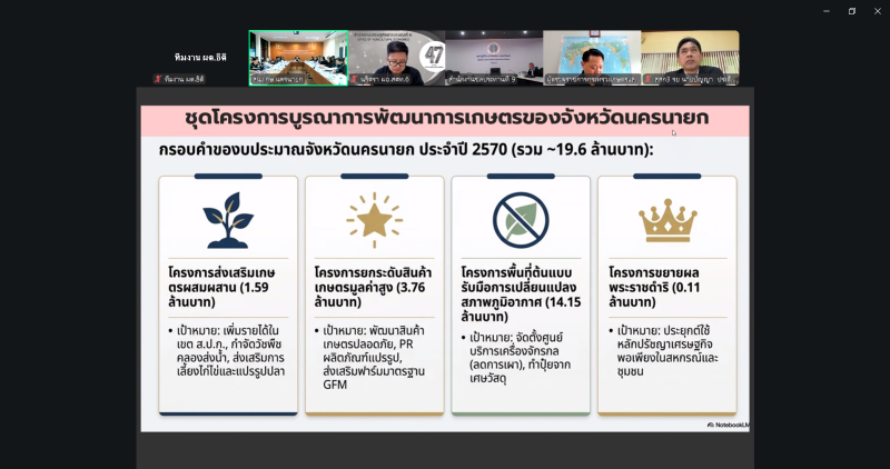วันพุธที่ 11 มีนาคม 2569 เวลา 09.30 น. ผู้ตรวจราชการกระทรวงเกษตรและสหกรณ์ (นายธิติ โลหะปิยะพรรณ) เป็นประธานการประชุมติดตามการดำเนินงานตามนโยบายสำคัญของกระทรวงเกษตรและสหกรณ์ ตามแผนการตรวจราชการ ประจำปีงบประมาณ พ.ศ. 2569 รอบที่ 1 ของจังหวัดนครนายก โดยมีผู้ช่วยผู้ตรวจราชการกระทรวงเกษตรและสหกรณ์ ระดับกรม เกษตรและสหกรณ์จังหวัด และหัวหน้าส่วนราชการในสังกัดกระทรวงเกษตรและสหกรณ์ รวมทั้งผู้แทนหน่วยงานที่เกี่ยวข้องเข้าร่วมการประชุม