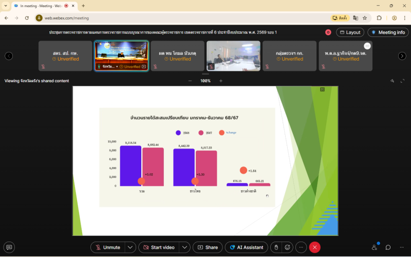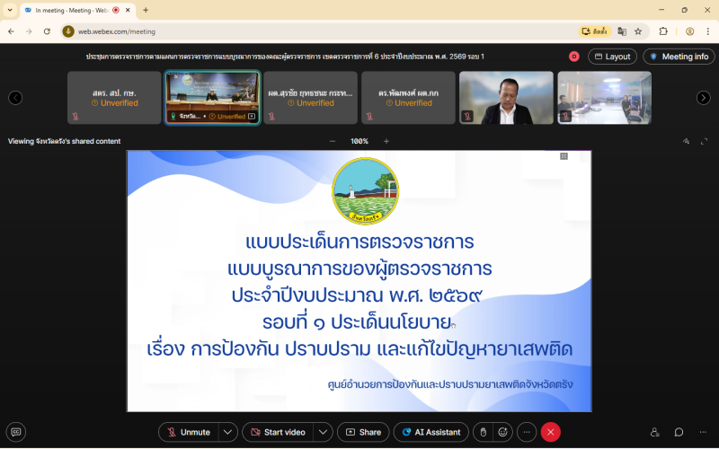 วันพฤหัสบดีที่ 12 มีนาคม 2569 เวลา 09.30 น. นายสุรชัย ยุทธชนะ ผู้ตรวจราชการกระทรวงเกษตรและสหกรณ์ เขตตรวจราชการที่ 6 ร่วมประชุมการตรวจราชการตามแผนการตรวจราชการแบบบูรณาการของคณะผู้ตรวจราชการของรองหัวหน้าผู้ตรวจราชการสำนักนายกรัฐมนตรี เขตตรวจราชการที่ 6 (พันตำรวจเอก ประทีป เจริญกัลป์) และคณะผู้ตรวจราชการกระทรวง เขตตรวจราชการที่ 6 ประจำปีงบประมาณ พ.ศ. 2569 รอบที่ 1 ผ่านระบบออนไลน์สื่ออิเล็กทรอนิกส์ (Video Conference) เพื่อติดตามผลการดำเนินแผนงาน/โครงการตามแผนการตรวจราชการแบบบูรณาการของผู้ตรวจราชการ ประจำปีงบประมาณ พ.ศ. 2569 ในประเด็นกสำคัญของรัฐบาล ได้แก่ การป้องกัน ปราบปราม และแก้ไขปัญหายาเสพติด การยกระดับการท่องเที่ยวเพื่อสร้างรายได้ และการเข้าถึงสิทธิและสวัสดิการขั้นพื้นฐานของประชาชนกลุ่มเป้าหมาย เด็ก คนพิการ และผู้สูงอายุ