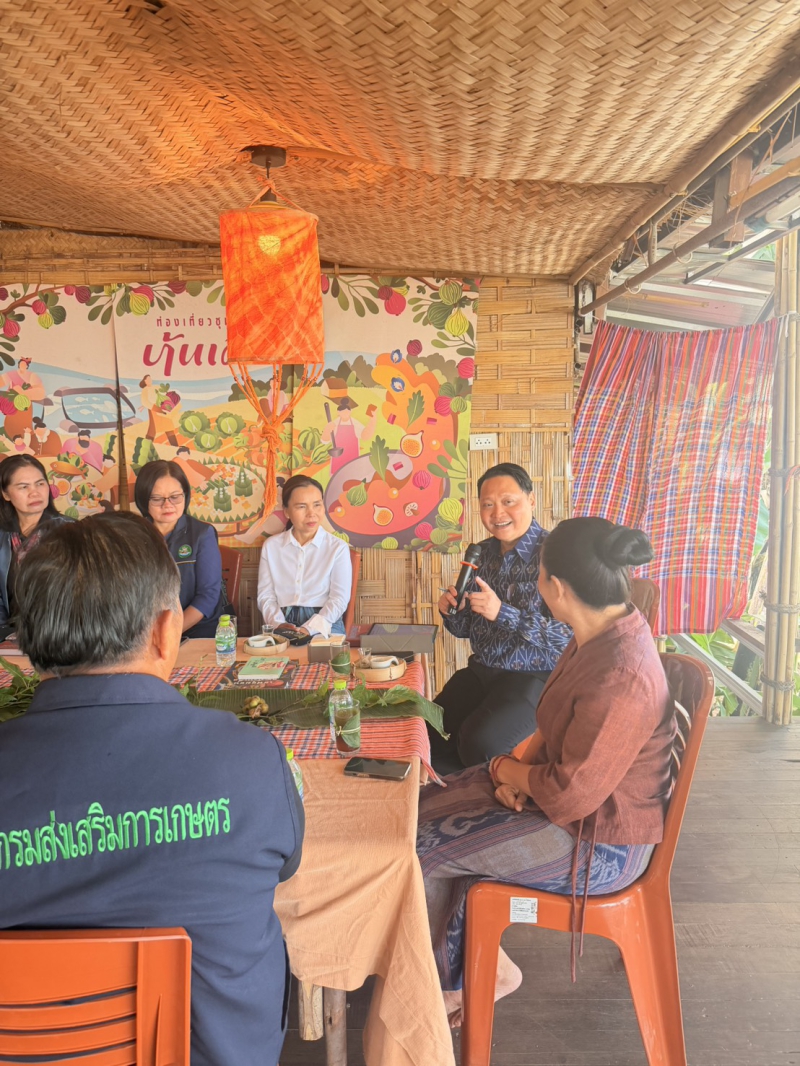 ต่อมา เวลา 09.00 น. นายธิติ โลหะปิยะพรรณ และคณะ ได้ลงพื้นที่ตรวจเยี่ยมการดำเนินงานส่งเสริม เกษตรมูลค่าสูง ในพื้นที่ จำนวน 2 สินค้าสำคัญ ที่จะส่งเสริมไปสู่การสร้างอัตลักษณ์ ได้แก่