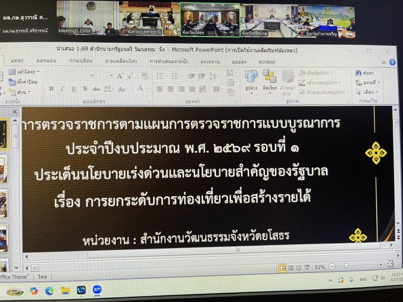 วันอังคารที่ 17 มีนาคม พ.ศ. 2569 เวลา 09.30 น. ผู้ตรวจราชการกระทรวงเกษตรและสหกรณ์ (นางสุวรรณี ศรีสุวรรณ์) ร่วมประชุมตรวจติดตามงานตามแผนการตรวจราชการแบบบูรณาการ ประจำปีงบประมาณ พ.ศ. 2569 รอบที่ 1 ของรองหัวหน้าผู้ตรวจราชการสำนักนายกรัฐมนตรี เขตตรวจราชการภาคตะวันออกเฉียงเหนือ (นายอิทธิพล ช่างกลึงดี) เป็นประธาน ร่วมด้วย ผู้ตรวจราชการสำนักนายกรัฐมนตรี เขตตรวจราชการที่ 14 (นางสุภัทร กิจเวช) ผู้ตรวจราชการกระทรวง โดยถ่ายทอดสัญญาณจากสำนักตรวจราชการ ชั้น 3 อาคารสำนักงานปลัดสำนักนายกรัฐมนตรี ทำเนียบรัฐบาล และที่ปรึกษาผู้ตรวจราชการภาคประชาชน พร้อมด้วยหัวหน้าส่วนราชการที่เกี่ยวข้องโดยมีจังหวัดในเขตตรวจราชการที่ 14 ได้แก่ อุบลราชธานี อำนาจเจริญ ยโสธร และศรีสะเกษ