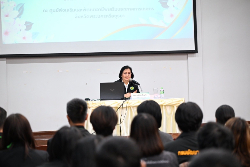วันที่ 25 มีนาคม 2569 นางสาวทัศนีย์ เมืองแก้ว รองปลัดกระทรวงเกษตรและสหกรณ์ เป็นประธานพิธีเปิดการอบรมหลักสูตรนักบริหารการพัฒนาการเกษตรและสหกรณ์ ระดับต้น (นบต.) รุ่นที่ 80 และบรรยายพิเศษ เรื่อง “นโยบายกระทรวงเกษตรและสหกรณ์” โดยมีนายยุทธภูมิ ประสมทรัพย์ หัวหน้ากลุ่มวิชาการและหลักสูตร สถาบันเกษตราธิการ กล่าวรายงาน และผู้เข้ารับการอบรมจากหน่วยงานในสังกัดกระทรวงเกษตรและสหกรณ์เข้าร่วม จำนวน 100 คน ณ หอประชุมหม่อมราชวงศ์หญิงรสลิน คัคณางค์ ศูนย์ส่งเสริมและพัฒนาอาชีพเสริมนอกภาคการเกษตร บางไทร สำนักงานการปฏิรูปที่ดินเพื่อเกษตรกรรม (ส.ป.ก.) ต.ช้างใหญ่ อ.บางไทร จ.พระนครศรีอยุธยา