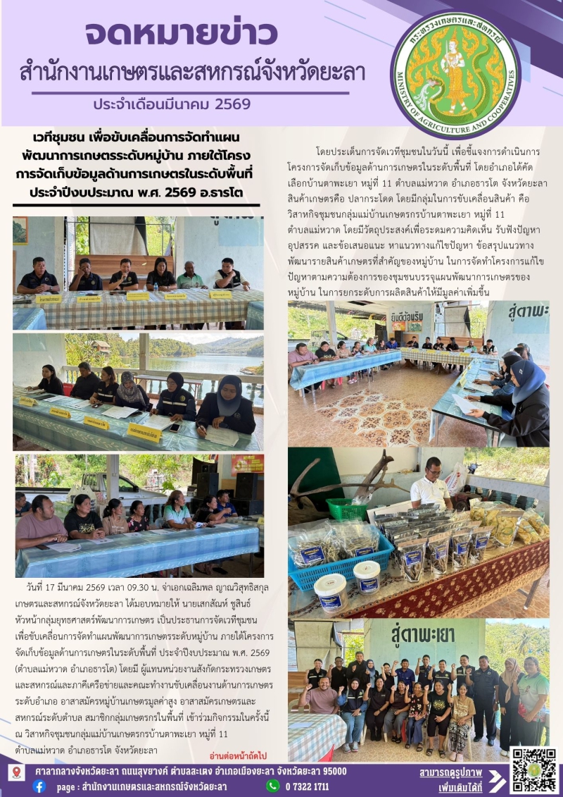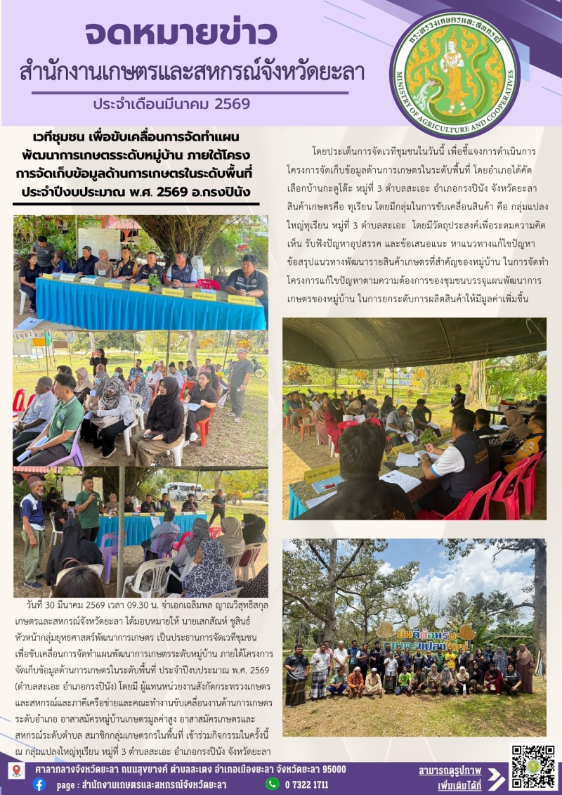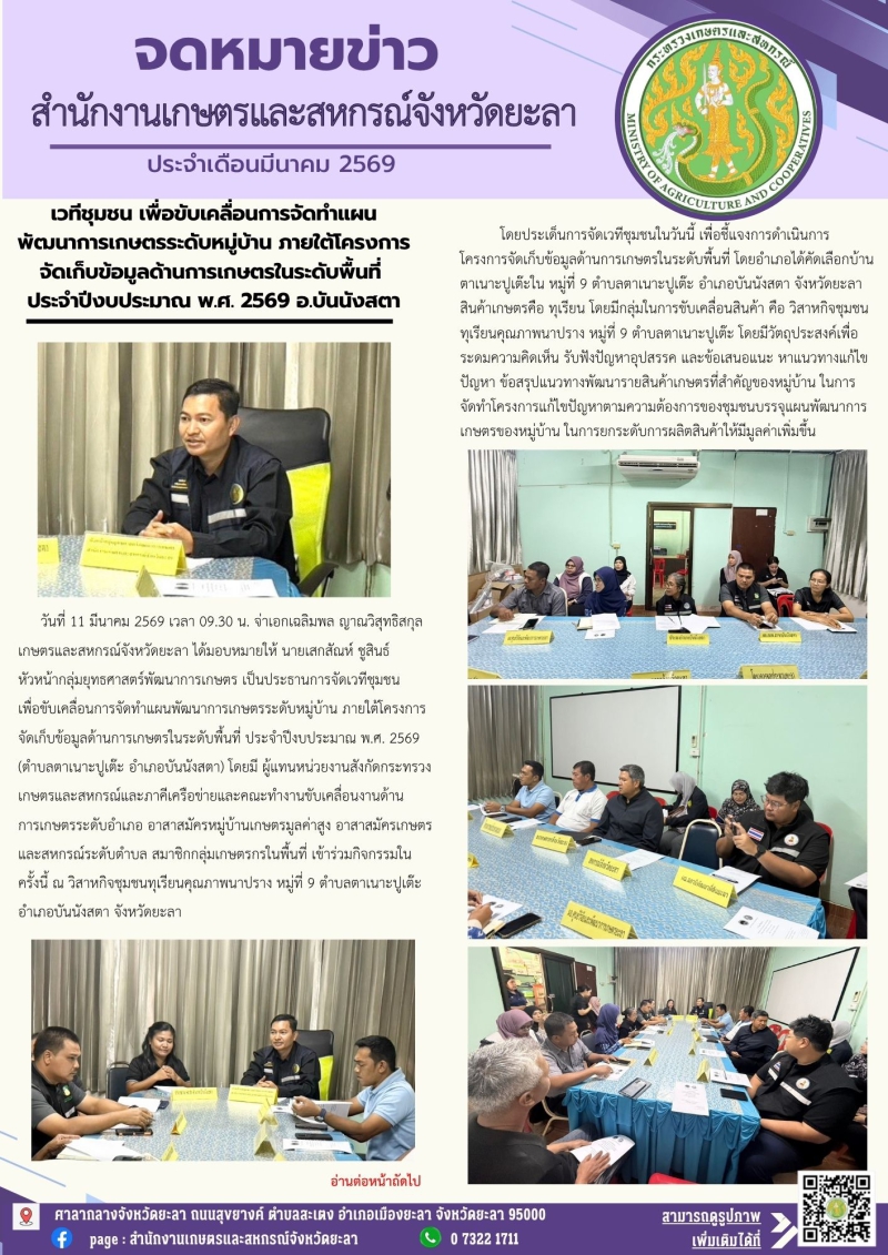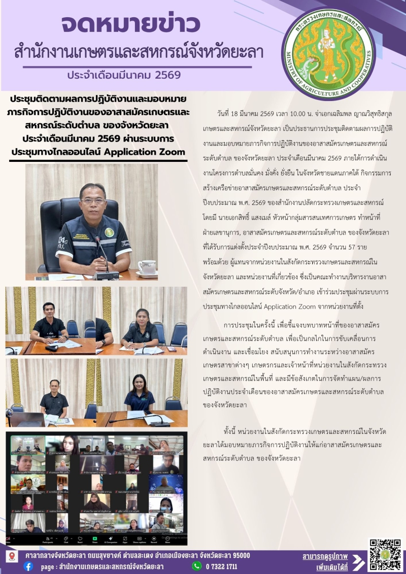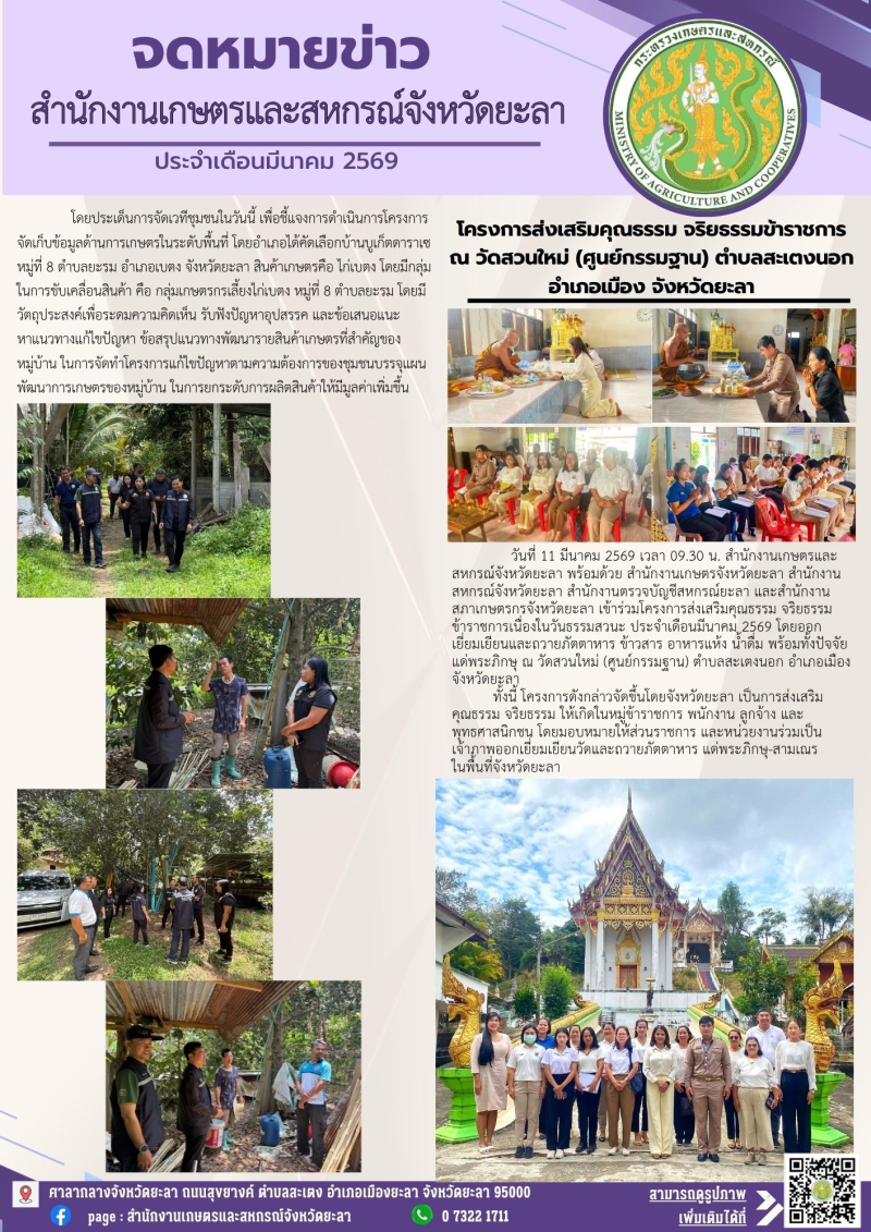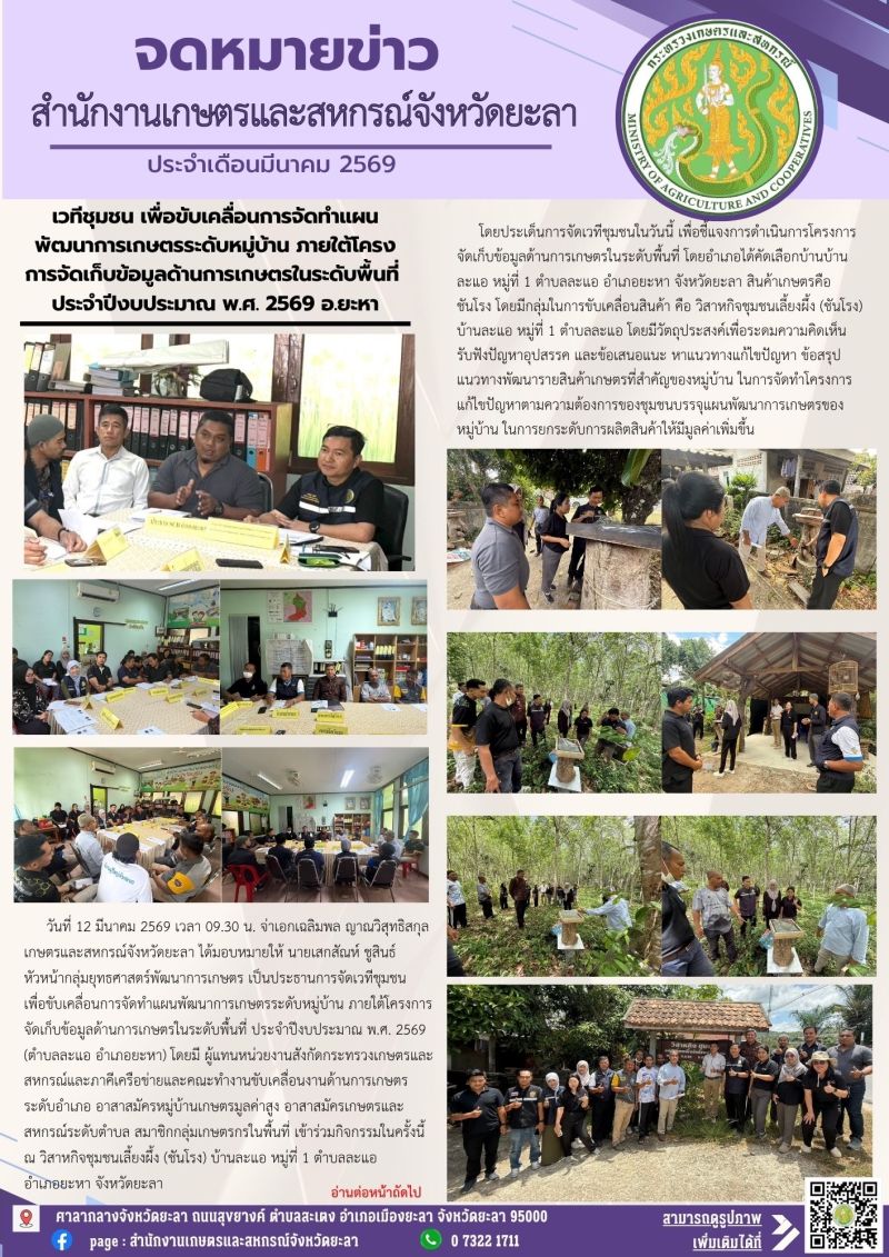 จดหมายข่าวประจำเดือนมีนาคม 2569 สำนักงานเกษตรและสหกรณ์จังหวัดยะลา