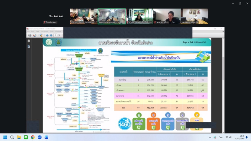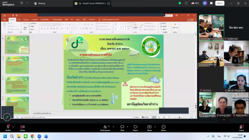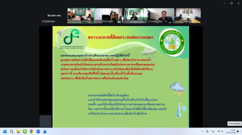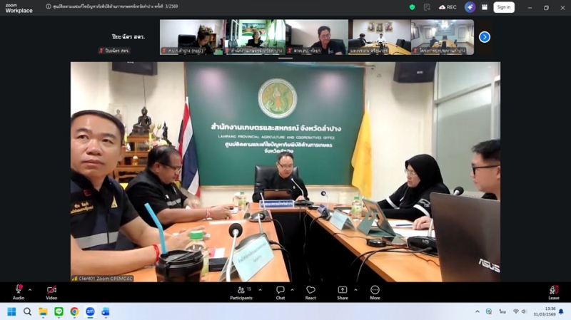 วันอังคารที่ 31 มีนาคม 2569 (เวลา 13.30 น.) ดร.พรเทพ ศรีธนาธร ผู้ตรวจราชการกระทรวงเกษตรและสหกรณ์ เขตตรวจราชการที่ 15 เป็นประธานการประชุมคณะกรรมการศูนย์ติดตามและแก้ไขปัญหาภัยพิบัติด้านการเกษตรจังหวัดลำปาง ครั้งที่ 3/2569 ผ่านระบบออนไลน์ (Zoom Meeting) โดยมี นายจิตติศักดิ์ ศรีปัญญา เกษตรและสหกรณ์จังหวัดลำปาง พร้อมด้วยหัวหน้าส่วนราชการและผู้แทนหน่วยงานที่เกี่ยวข้องเข้าร่วมประชุม ณ ห้องประชุม1402 สำนักตรวจราชการ สำนักงานปลัดกระทรวงเกษตร