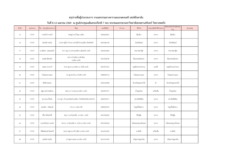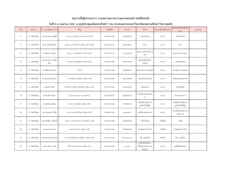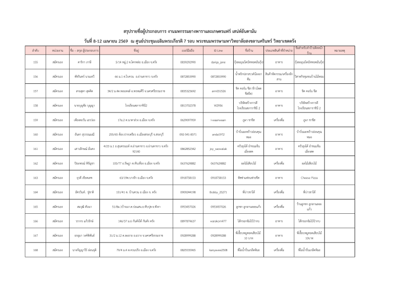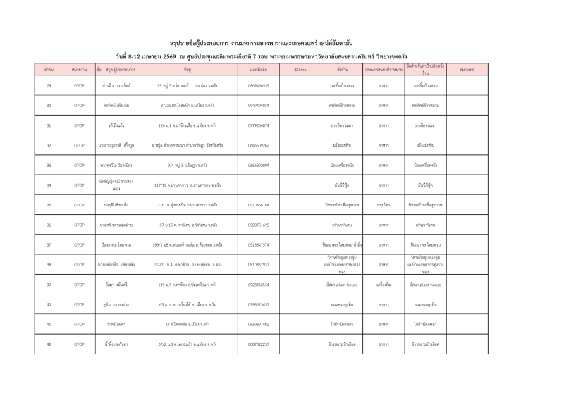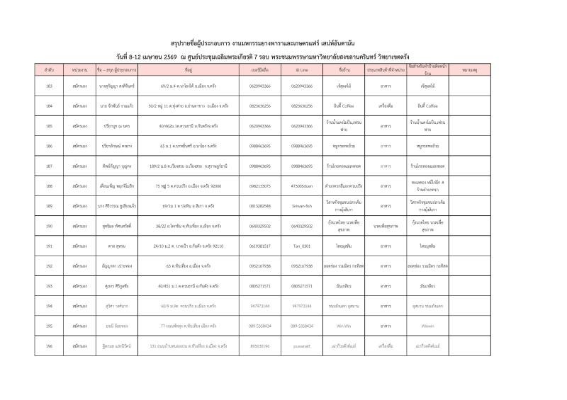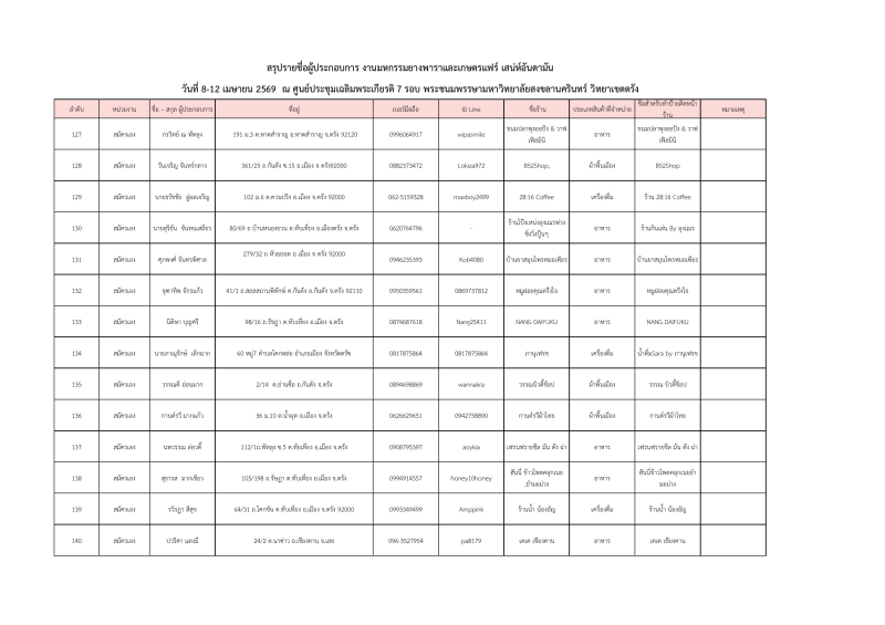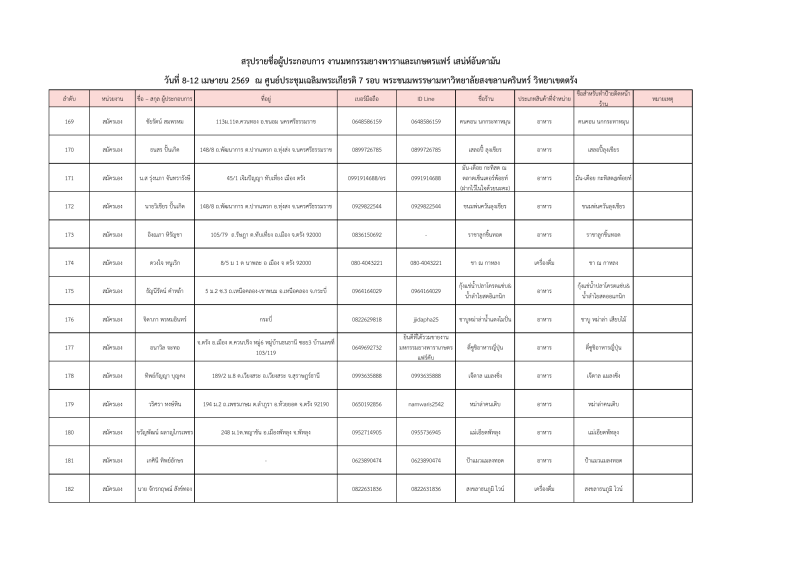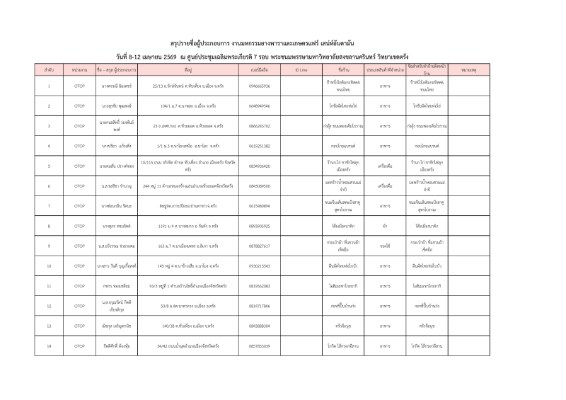รายชื่อผู้ประกอบการที่ผ่านการคัดเลือกออกบูธจำหน่ายสินค้าโซนเกษตรแฟร์ งานมหกรรมยางพาราและเกษตรแฟร์ เสน่ห์อันดามัน ระหว่างวันที่ 8-12เมษายน 2569 ณ ศูนย์ประชุมฯมหาวิทยาลัยสงขลานครินทร์ วิทยาเขตตรัง