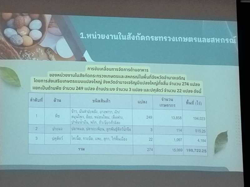 วันพุธที่ 29 เมษายน 2569 13.30 น. นางปารีณา สอนอาจ เกษตรและสหกรณ์จังหวัดอำนาจเจริญ มอบหมายให้นายธวัชชัย นาราษฎร์ หัวหน้ากลุ่มยุทธศาสตร์พัฒนาการเกษตร พร้อมด้วยนางสาวศศิธร สุวรรณกูฏ นักวิเคราะห์นโยบายและแผนชำนาญการ สำนักงานฯ เข้าร่วมการประชุมคณะกรรมการขับเคลื่อนแผนปฏิบัติการด้านการจัดการด้านอาหารของประเทศไทย ระดับจังหวัด ครั้งที่ 1/2569 โดยมีนายเทพรัตน์ ตันตยานนท์ รองผู้ว่าราชการจังหวัดอำนาจเจริญ เป็นประธานฯ และมีคณะรรมการฯ เข้าร่วมประชุม ณ ห้องประชุมคณาพันธ์ สำนักงานสาธารณสุขจังหวัดอำนาจเจริญ อำเภอเมือง จังหวัดอำนาจเจริญ ซึ่งคณะกรรมการฯ ดังกล่าว มีบทบาทหน้าที่ดำเนินการขับเคลื่อนแผนงานโครงการ กำหนดนโยบายงานด้านอาหารเพื่อให้แต่ละจังหวัด มีความมั่นคง ความปลอดภัยด้านอาหาร อาหารมีความเพียงพอสำหรับการบริโภค รวมถึงมีอาหารที่มีระบบการผลิตที่เกื้อหนุนและรักษาสมดุลของระบบนิเวศและความคงอยู่ของฐานทรัพยากรธรรมชาติ มีการกระจายอาหารอย่างทั่วถึงและเท่าเทียม ซึ่งนำไปสู่ความมั่นคงทางอาหารและโภชนาการอย่างยั่งยืน ในระดับครัวเรือน ท้องถิ่น จังหวัดและประเทศทั้งในภาวะปกติและภาวะวิกฤติ