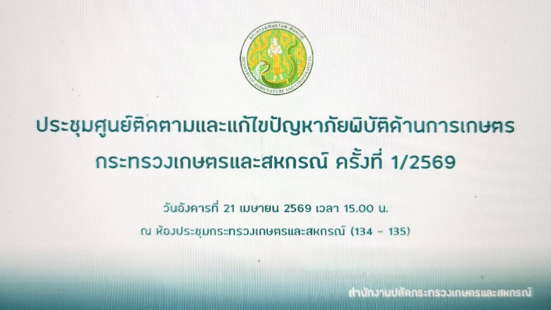 วันอังคารที่ 21 เมษายน 2569 เวลา 15.00 น. ที่ห้องประชุมสำนักงานเกษตรและสหกรณ์จังหวัดอำนาจเจริญ นางปารีณา สอนอาจ เกษตรและสหกรณ์จังหวัดอำนาจเจริญ พร้อมด้วยนายอภิชิต โพธิ์ศรี หัวหน้ากลุ่มช่วยเหลือเกษตรกรและโครงการพิเศษ และเจ้าหน้าที่กลุ่มฯ สำนักงานฯ  เข้าร่วมการประชุมคณะกรรมการศูนย์ติดตามและแก้ไขปัญหาภัยพิบัติด้านการเกษตร กระทรวงเกษตรและสหกรณ์ ครั้งที่ 1/2569 ผ่านระบบประชุมทางไกลออนไลน์ Zoom meeting  โดยมีนายกฤษ อุตตมะเวทิน รองปลัดกระทรวงเกษตรและสหกรณ์ ในฐานะผู้อำนวยการศูนย์ติดตามและแก้ไขปัญหาภัยพิบัติด้านการเกษตรกระทรวงเกษตรและสหกรณ์ เป็นประธานการประชุม เพื่อรับทราบสถานการณ์น้ำ การบริหารจัดการน้ำ ปี 2568/69 การวางแผนการเพาะปลูกพืช ปี 2568/69  ตลอดจนการเตรียมความพร้อมในการรับสถานการณ์ภัยพิบัติทางการเกษตร เพื่อจะได้ดำเนินการแก้ไขปัญหาดังกล่าวได้ทันท่วงที