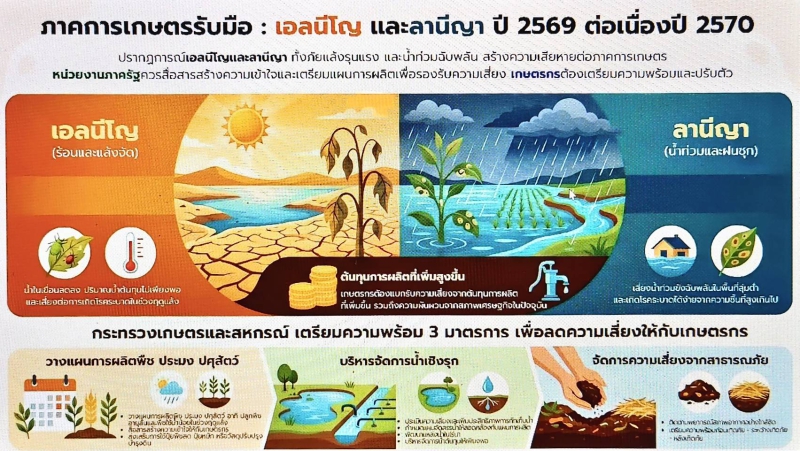 1) ศูนย์ติดตามฯ ได้จัดทำแผนป้องกันและบรรเทาสาธารณภัยด้านการเกษตรในช่วงฤดูแล้ง ปี 2568/69 โดยผ่านความเห็นชอบจากคณะกรรมการศูนย์ติดตามฯ เมื่อวันที่ 6 มกราคม 2569 แล้ว  รวมทั้งประชาสัมพันธ์สร้างการรับรู้ แจ้งเตือนเกษตรกร ประชาชนทราบสถานการณ์น้ำ  การบริหารจัดการน้ำ แผนการเพาะปลูกพืชฤดูแล้ง การระบาดของศัตรูพืช/โรคระบาดพืช สัตว์