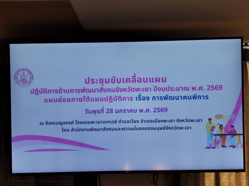 วันที่ 28 มกราคม 2569 เวลา 09.30 น. นางคัทลียา สิงหศิริ เกษตรและสหกรณ์จังหวัดพะเยา มอบหมายให้นางสาวกมลทิพย์ บุญรัตน์ นักวิเคราะห์นโยบายและแผนชำนาญการ เข้าร่วมประชุมขับเคลื่อนแผนปฏิบัติการด้านการพัฒนาสังคมจังหวัดพะเยา ปีงบประมาณ พ.ศ. 2569 “แผนย่อยภายใต้แผนปฏิบัติการเรื่อง การพัฒนาคนพิการ” ณ โรงแรมเกทเวย์ จังหวัดพะเยาโดยมีนางวัลลภ ธนู ประสิทธิ์ วัชรากร พัฒนาสังคมและความมั่งคงของมนุษย์จังหวัดพะเยา เป็นประธานเปิดโครงการฯ
