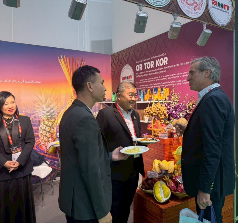 ด้าน นายปณิธาน มีไชยโย ผู้อำนวยการองค์การตลาดเพื่อเกษตรกร (อ.ต.ก.) เปิดเผยว่า การเข้าร่วมงาน Gulfood 2026 ในครั้งนี้นับเป็นการสร้างโอกาสให้ผลไม้ไทยและผลไม้แปรรูปเข้าสู่ช่องทางค้าปลีกระดับพรีเมียมและโรงแรมขนาดใหญ่ เพราะ UAE มีสภาพอากาศแห้งแล้งไม่เอื้อต่อการปลูกผลไม้เพื่อการบริโภค จึงต้องพึ่งพาการนำเข้าเป็นหลัก โดยเฉพาะผลไม้เมืองร้อน เช่น มะม่วงน้ำดอกไม้ ลำไย มังคุด ทุเรียน สับปะรด ซึ่งได้รับความนิยมทั้งในระดับผู้บริโภคทั่วไปและภาคธุรกิจร้านอาหารระดับพรีเมียม